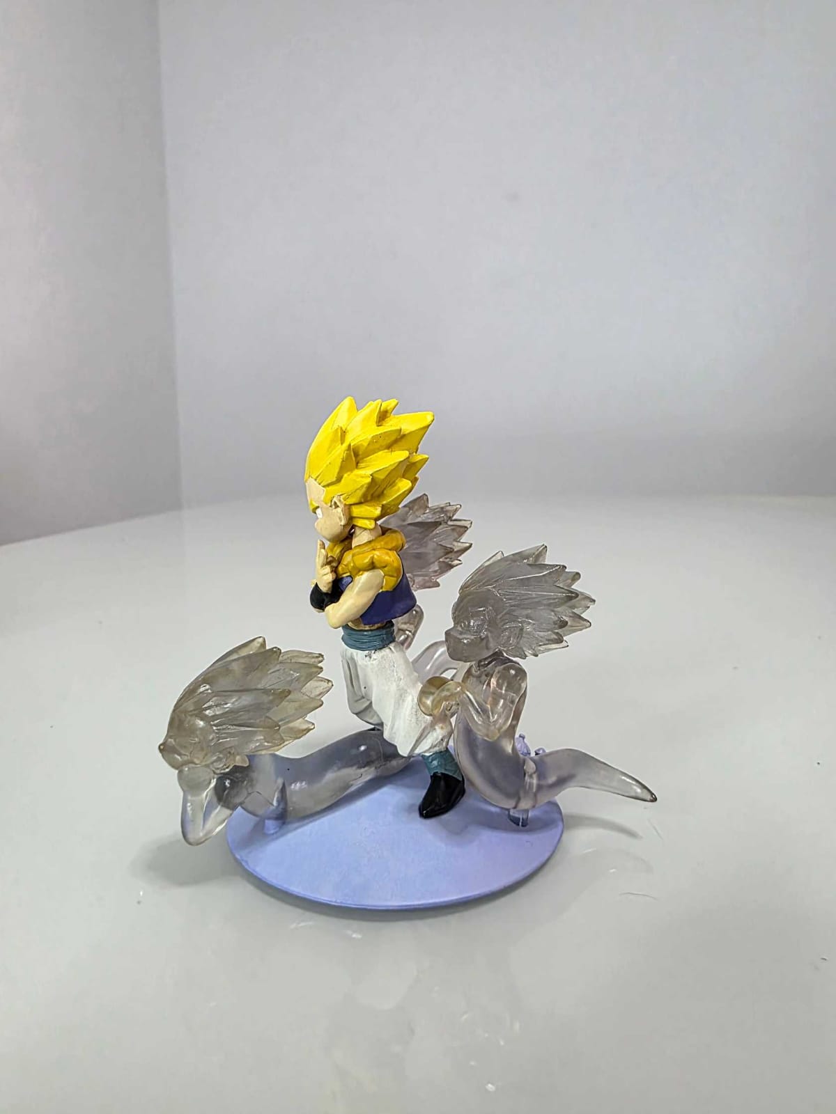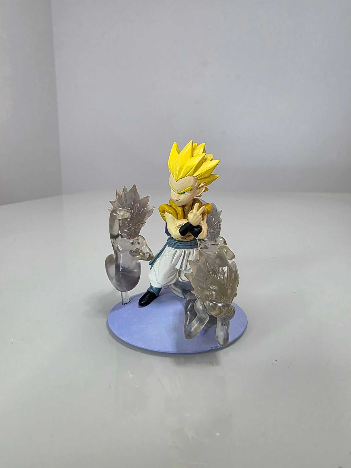 Figura de Gotenks en Super Saiyajin perteneciente a la colección Imagination Figure, representando su icónica técnica de los Fantasmas Kamikaze durante la saga de Majin Buu.
