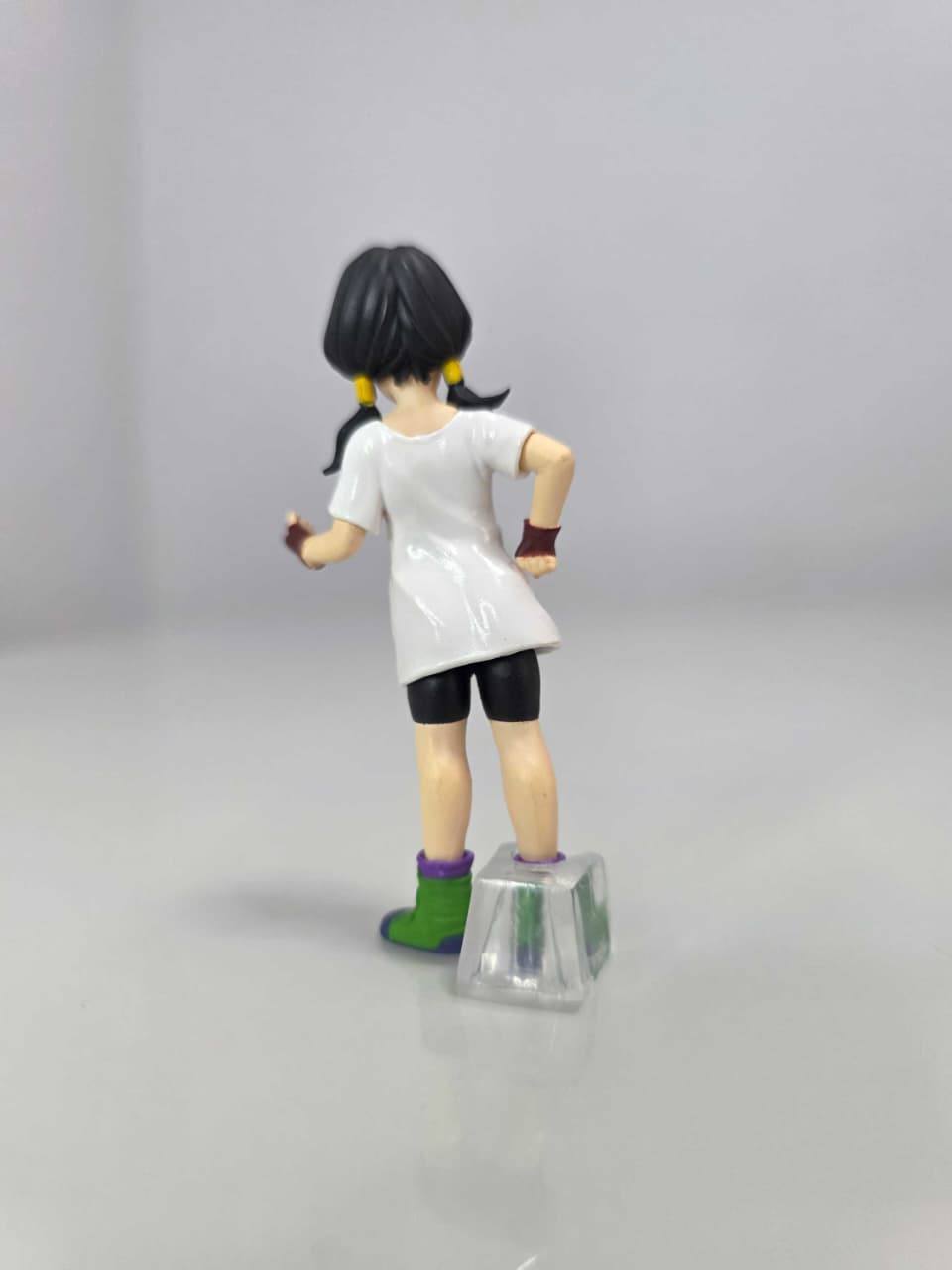 Figura gashapon de Videl, representada con su atuendo casual de entrenamiento y una pose lista para la acción que refleja su carácter fuerte y decidido.