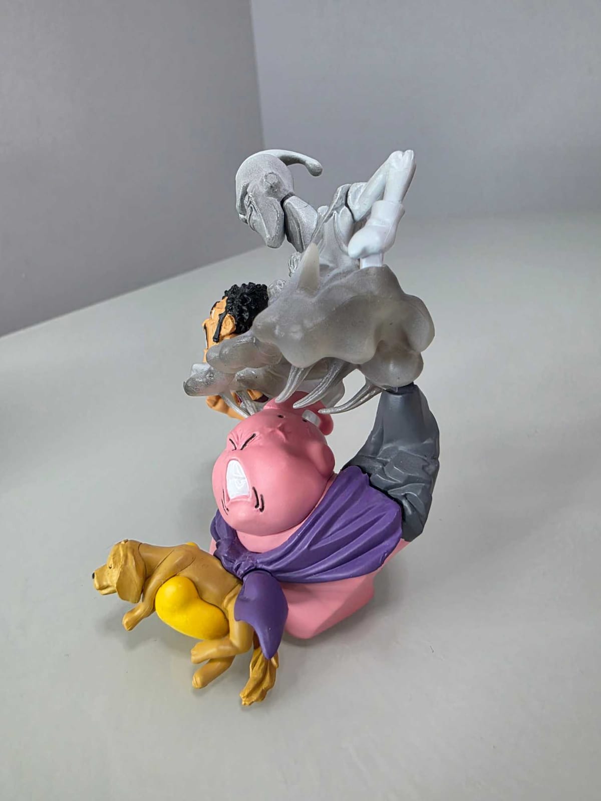 La composición vertical y el efecto translúcido refuerzan muy bien la transformación emocional y la separación entre el lado bueno y el lado maligno del personaje. Pieza fija, no articulada, ideal para vitrinas o dioramas de la saga de Buu.