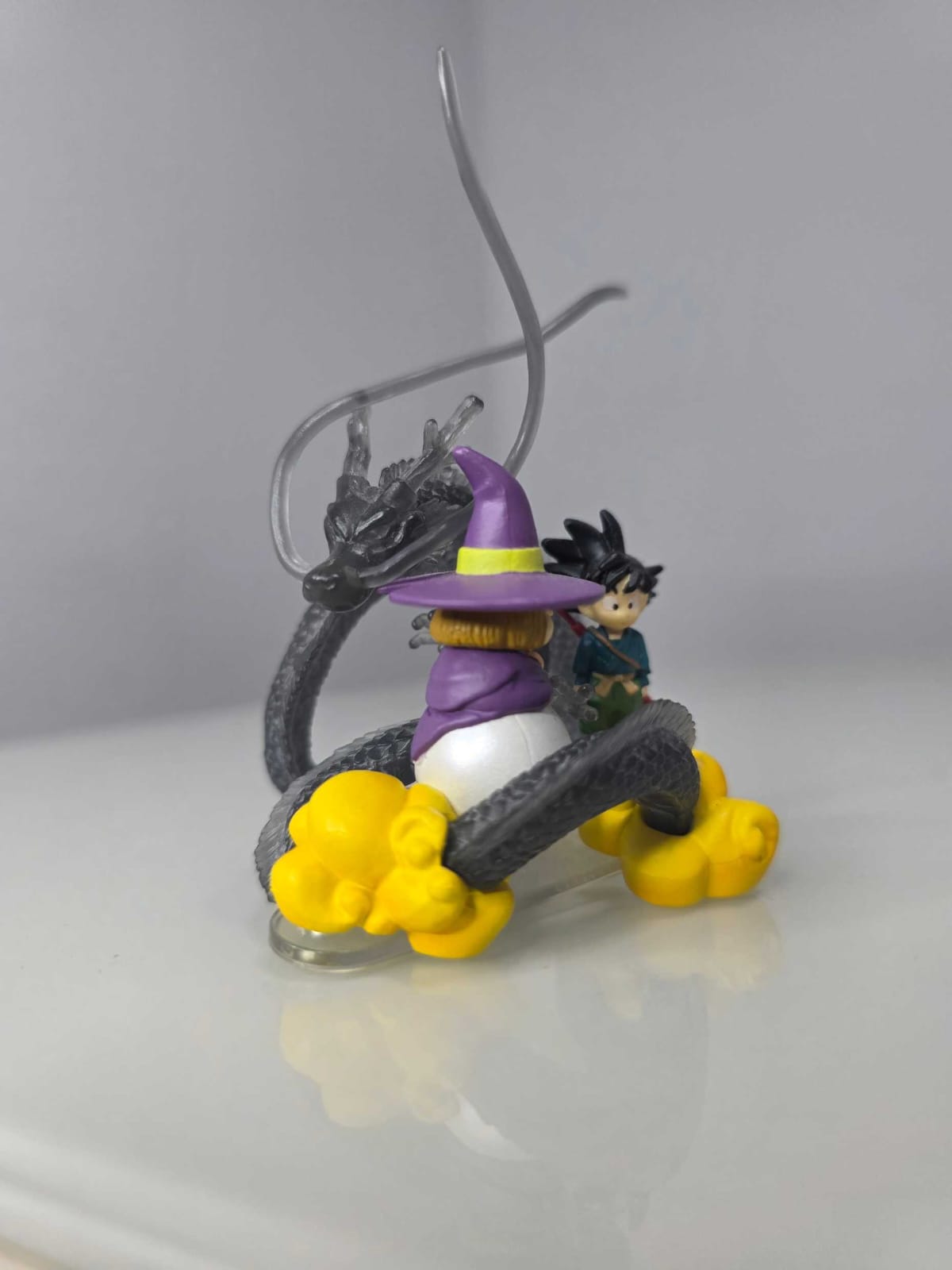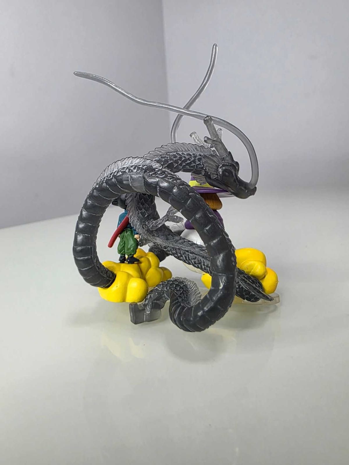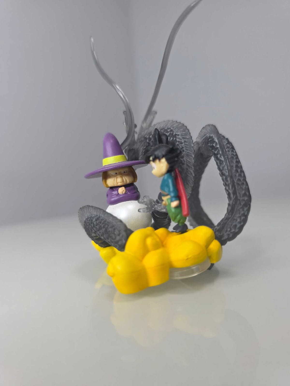 El contraste entre la nube amarilla, la figura flotante de Baba y la presencia serpenteante de Shenlong le da mucho movimiento a la pieza. Pieza fija, no articulada, ideal para vitrinas o colecciones del Dragon Ball clásico.