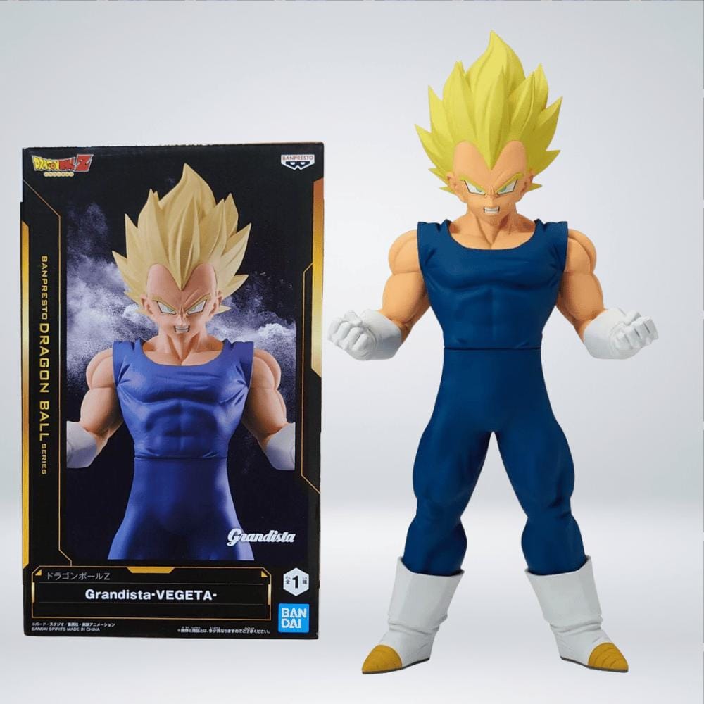 Figura de Vegeta Super Saiyajin perteneciente a la línea Grandista de Dragon Ball Z, representando una de las versiones más imponentes del príncipe Saiyajin durante sus momentos de mayor poder y determinación.