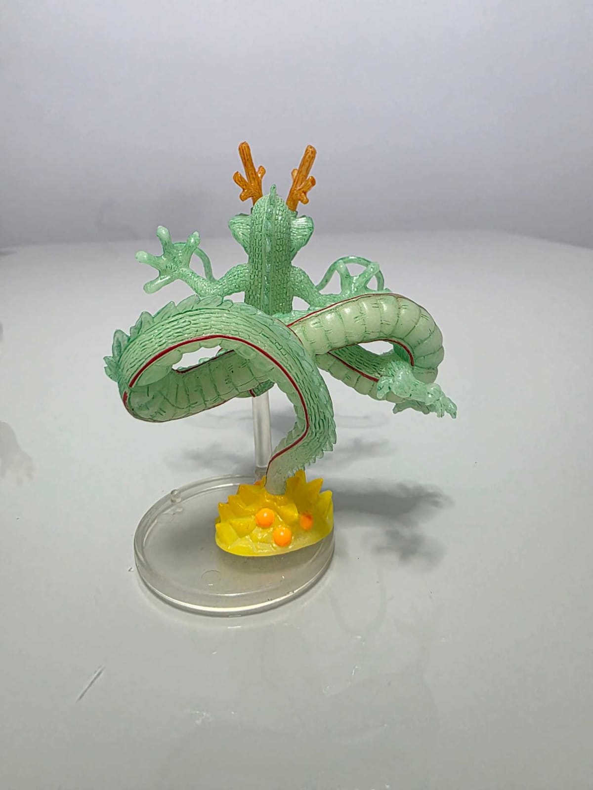 Mini diorama de la línea Imagination Series, Shenron emerge desde la base. Escena que recrea la primera invocación del dragón en la serie original. Gran nivel de detalle en escamas, efectos translúcidos y pintura brillante. Pieza fija, ideal para colecciones de dioramas o vitrinas temáticas de Dragon Ball.