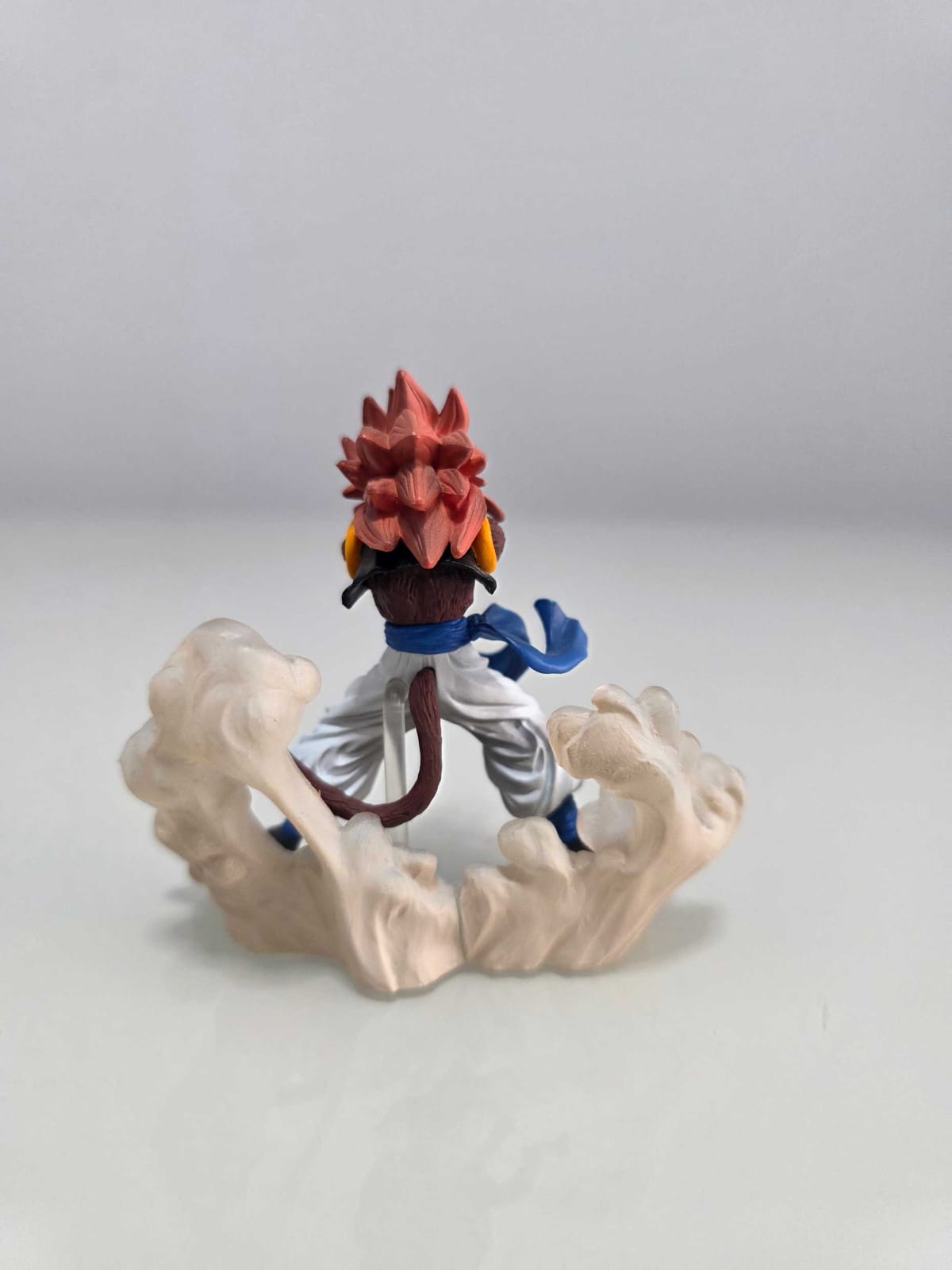 Mini escena de Gogeta SSJ4 en pose de ataque. Figura compacta con efecto de energía translúcida y base estable. Perfecta para complementar displays GT.
