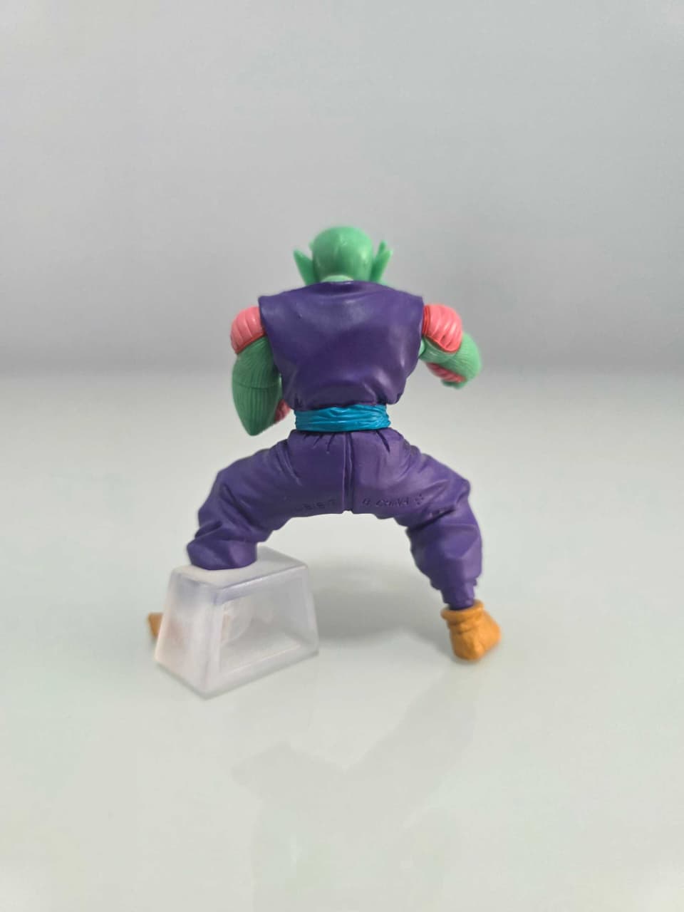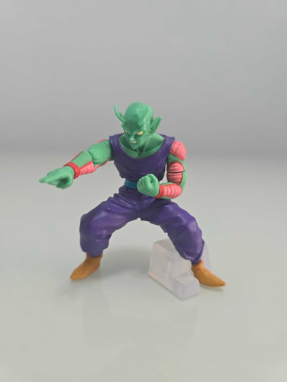 Figura articulable de Piccolo, el guerrero Namekiano, en pose de combate con expresión concentrada y brazos ajustables. Incluye base transparente para estabilidad.