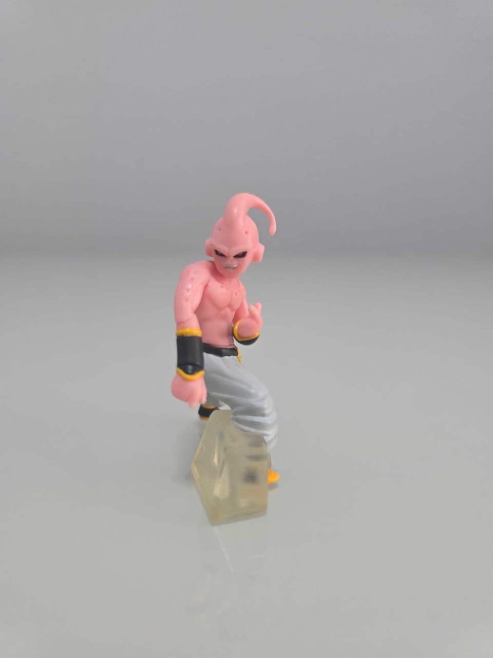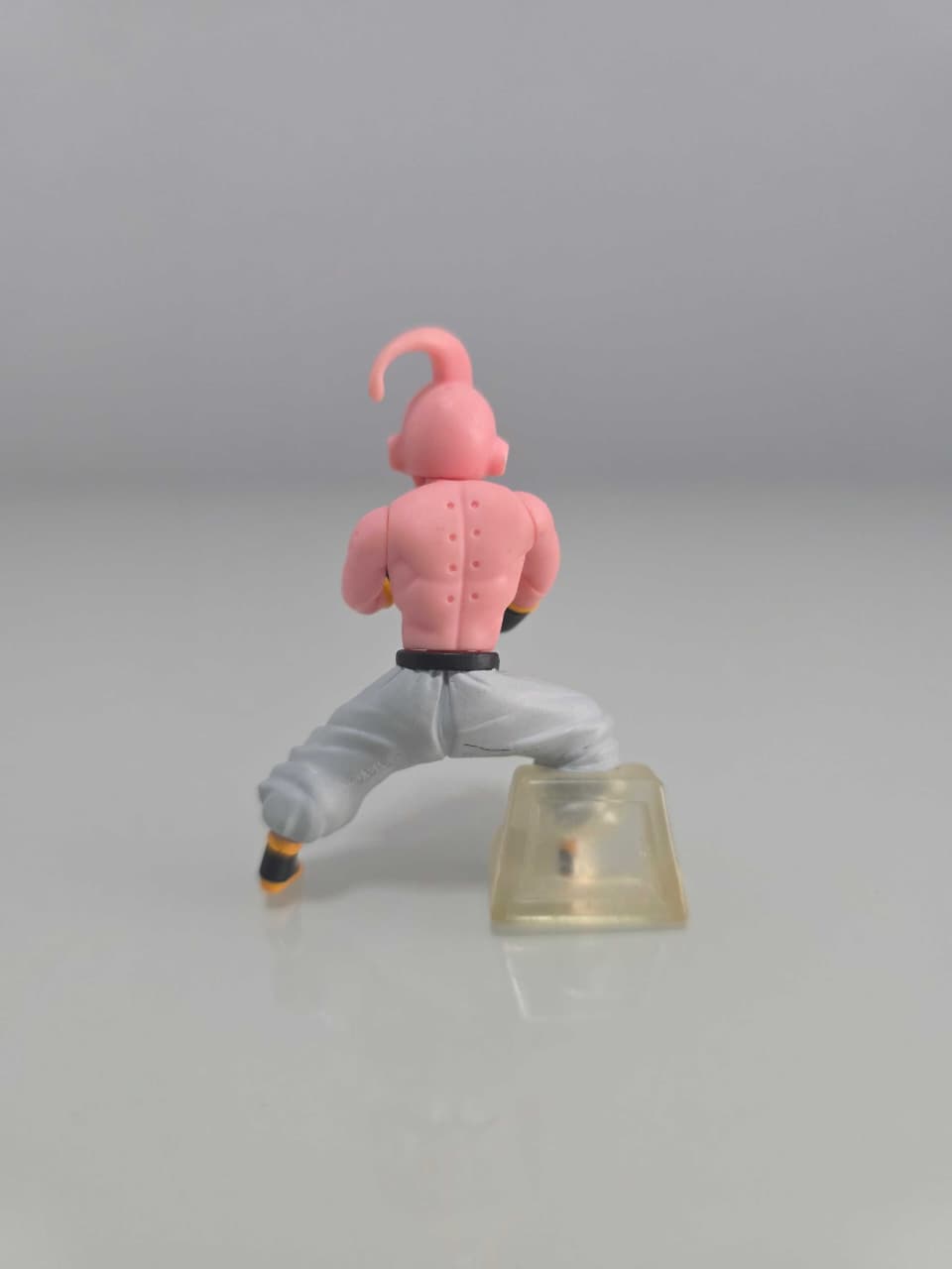 Figura articulable de Majin Buu (forma maligna) con su clásico pantalón gris y símbolo “M”.