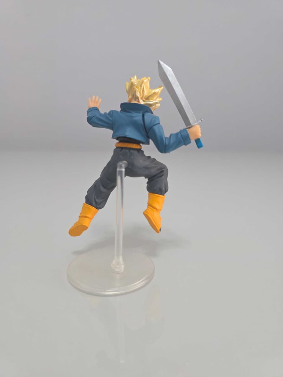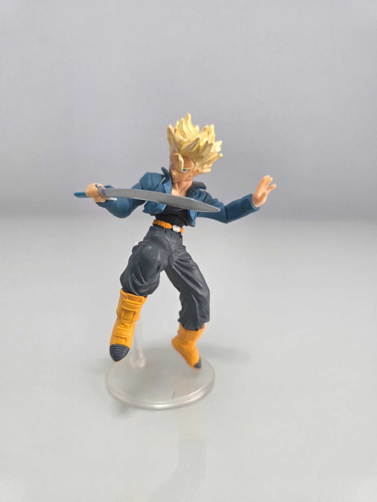 Figura articulable de Trunks del Futuro Super Saiyajin con espada en mano. Representa el icónico estilo de su combate contra Freezer.
