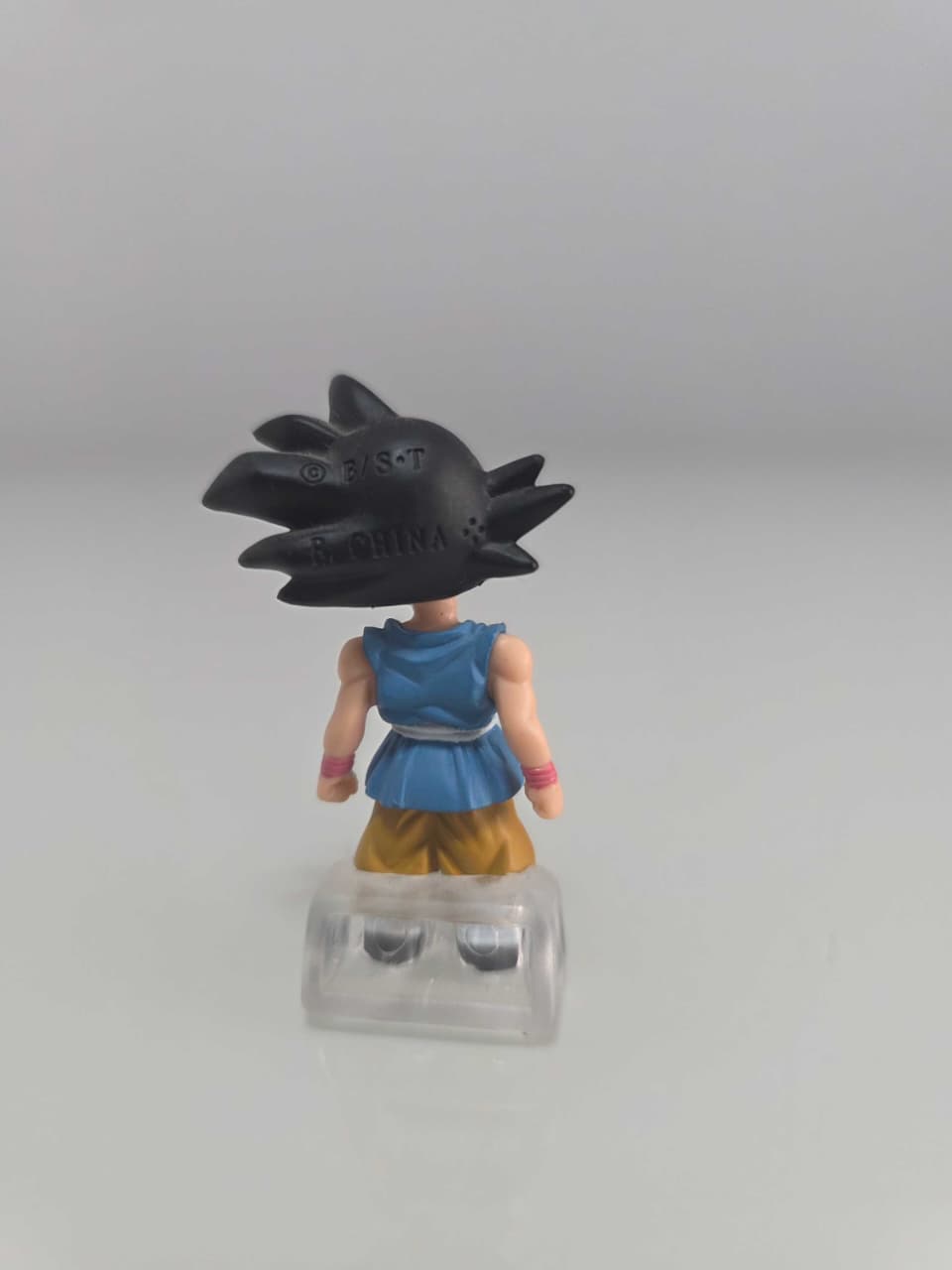 Figura de Goku GT niño, con su atuendo azul y pantalones amarillos.