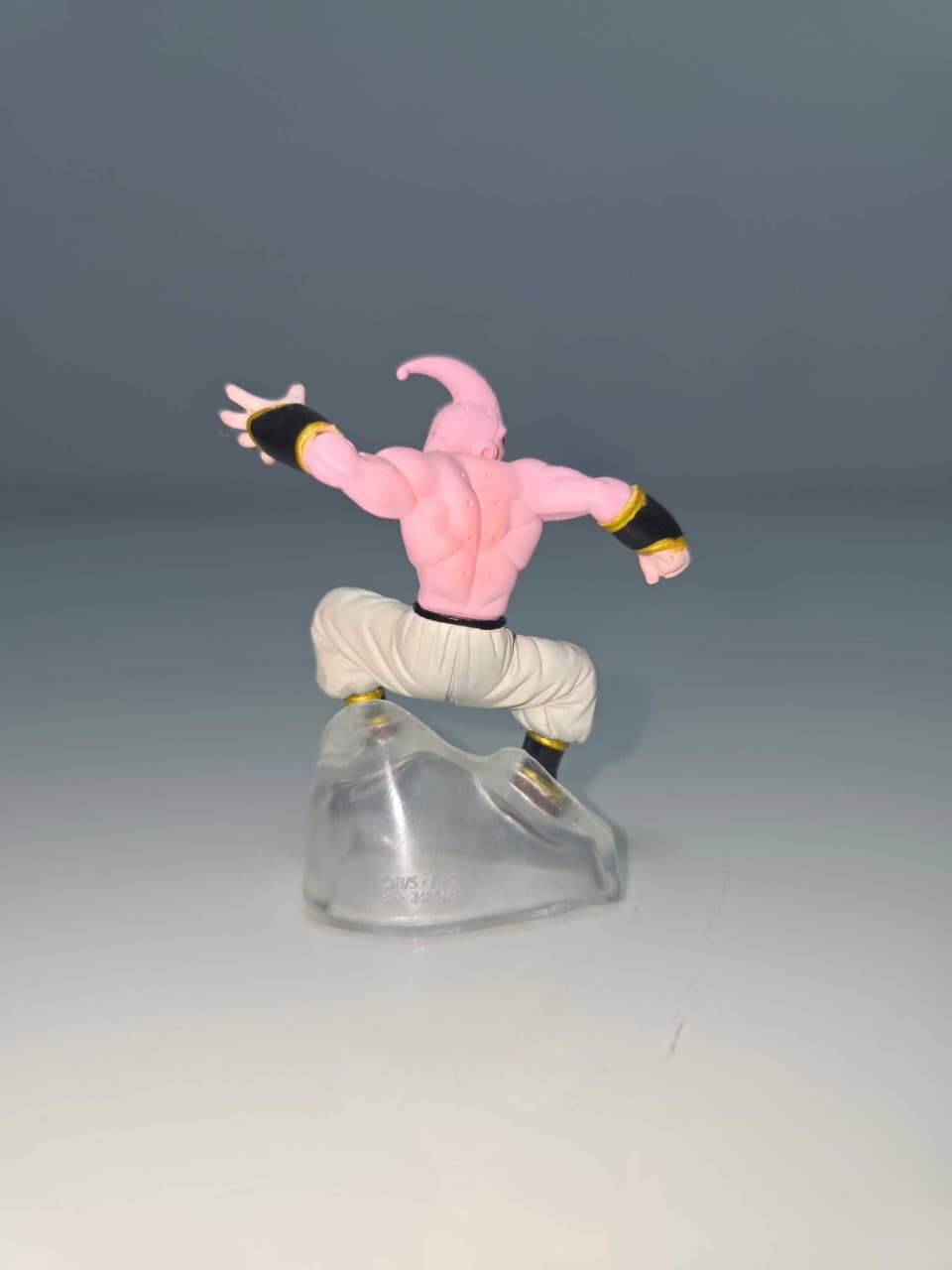 Figura de Super Buu (forma delgada) en posición ofensiva. La escultura resalta su musculatura y expresión furiosa.