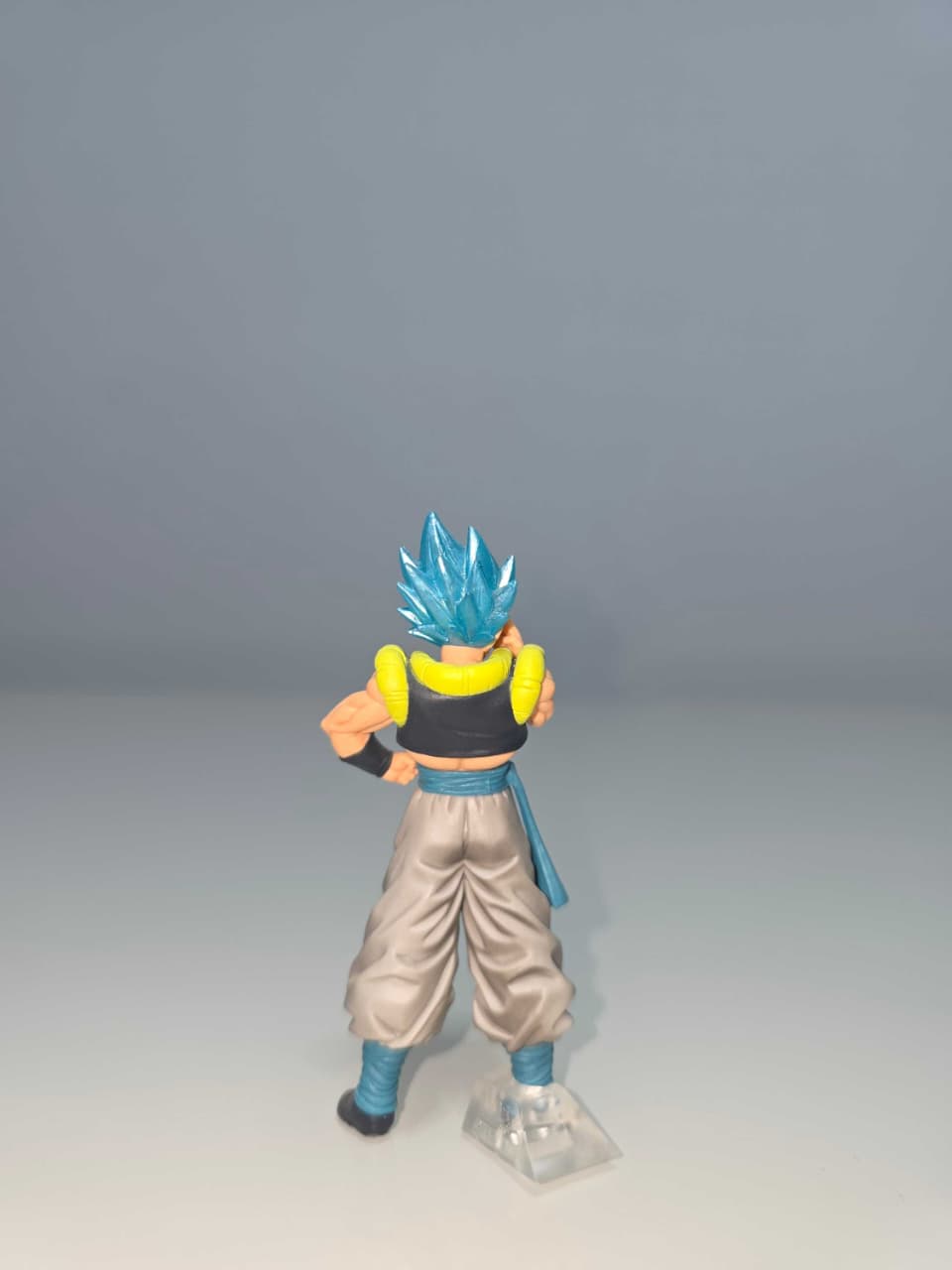 Figura de Gogeta en Super Saiyajin Blue, en una pose elegante con la mano en la frente. Representa su aparición en Dragon Ball Super: Broly. Excelente detalle en el cabello azul metálico y sombreado del pantalón gris.