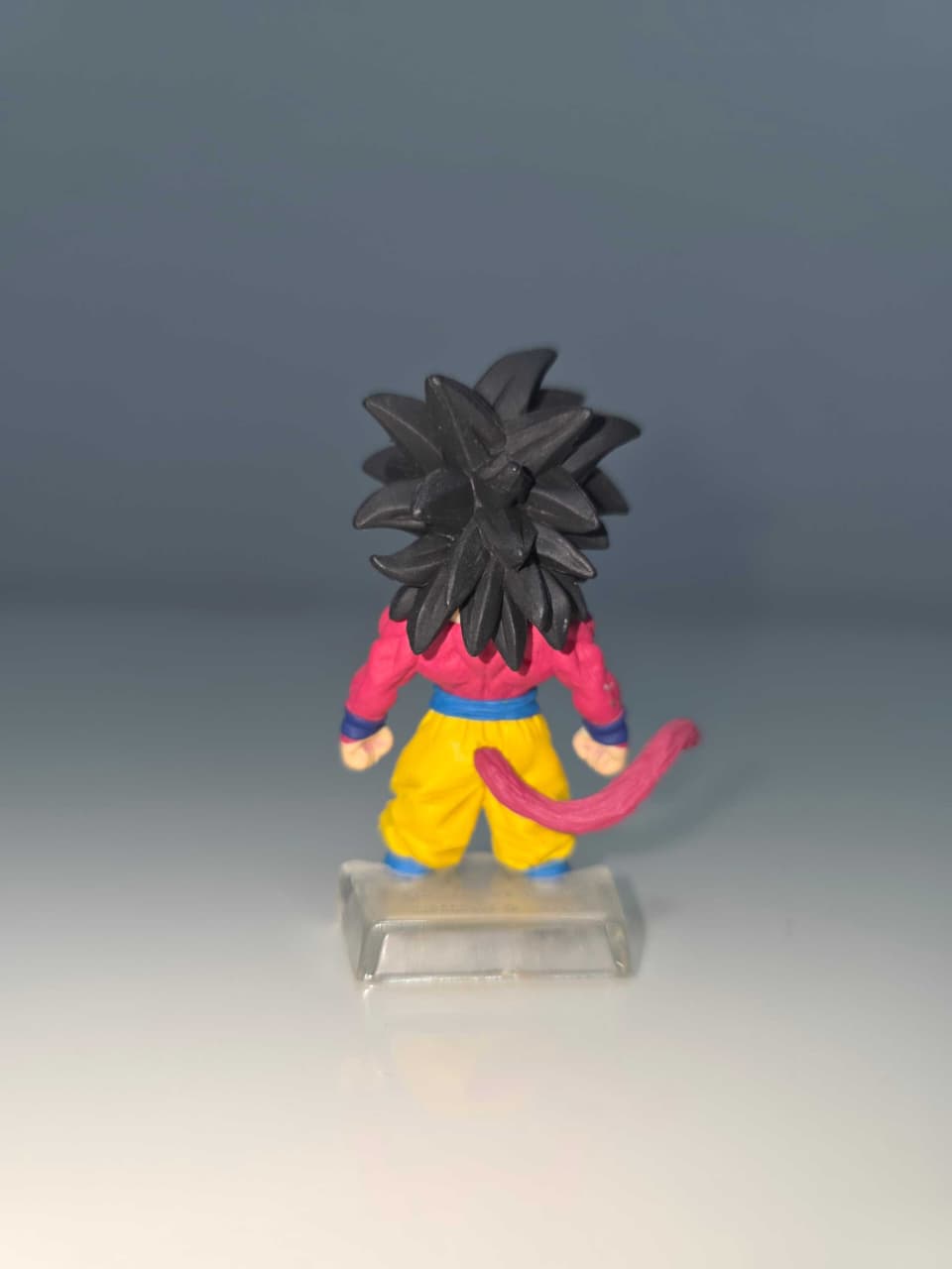 Figura de Goku Super Saiyajin 4, con su característico pelaje rojo, pantalón amarillo y mirada desafiante. Representa su forma más poderosa de GT, cuidando los detalles del cabello negro y la cola de mono.