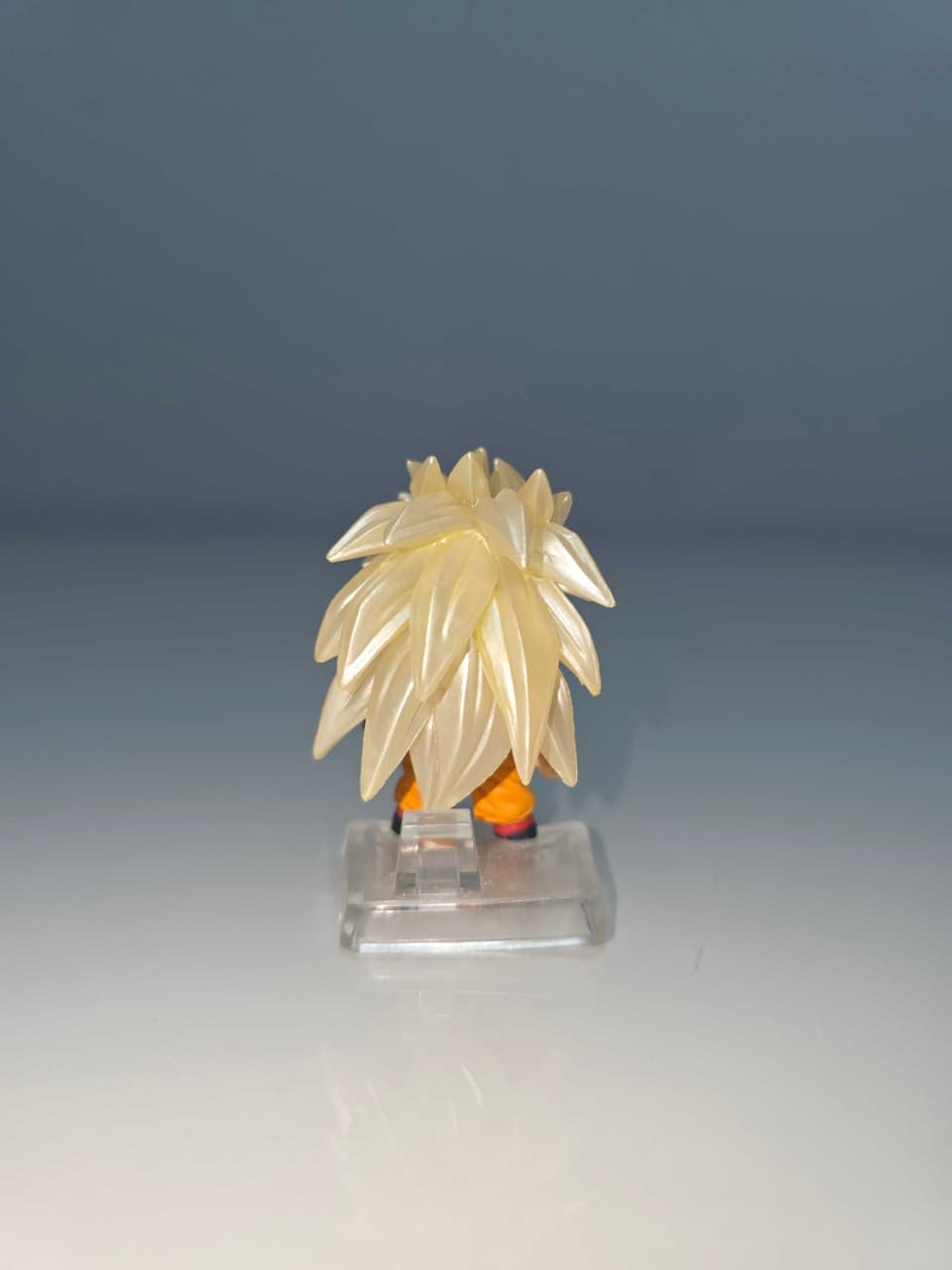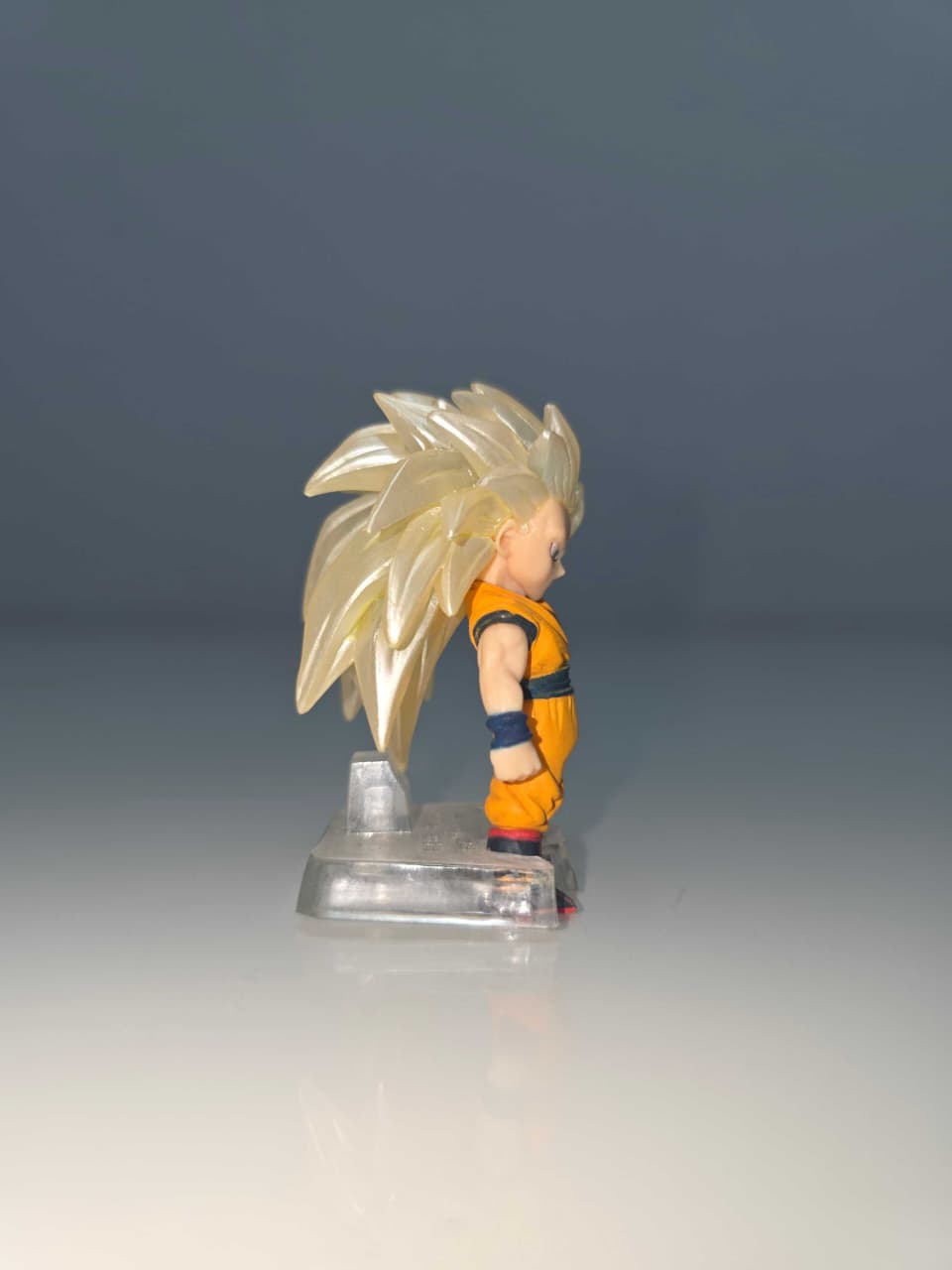 Figura de Goku Super Saiyajin 3, con el cabello largo dorado y expresión de concentración. Su traje naranja y postura firme reflejan su transformación durante la saga de Buu.