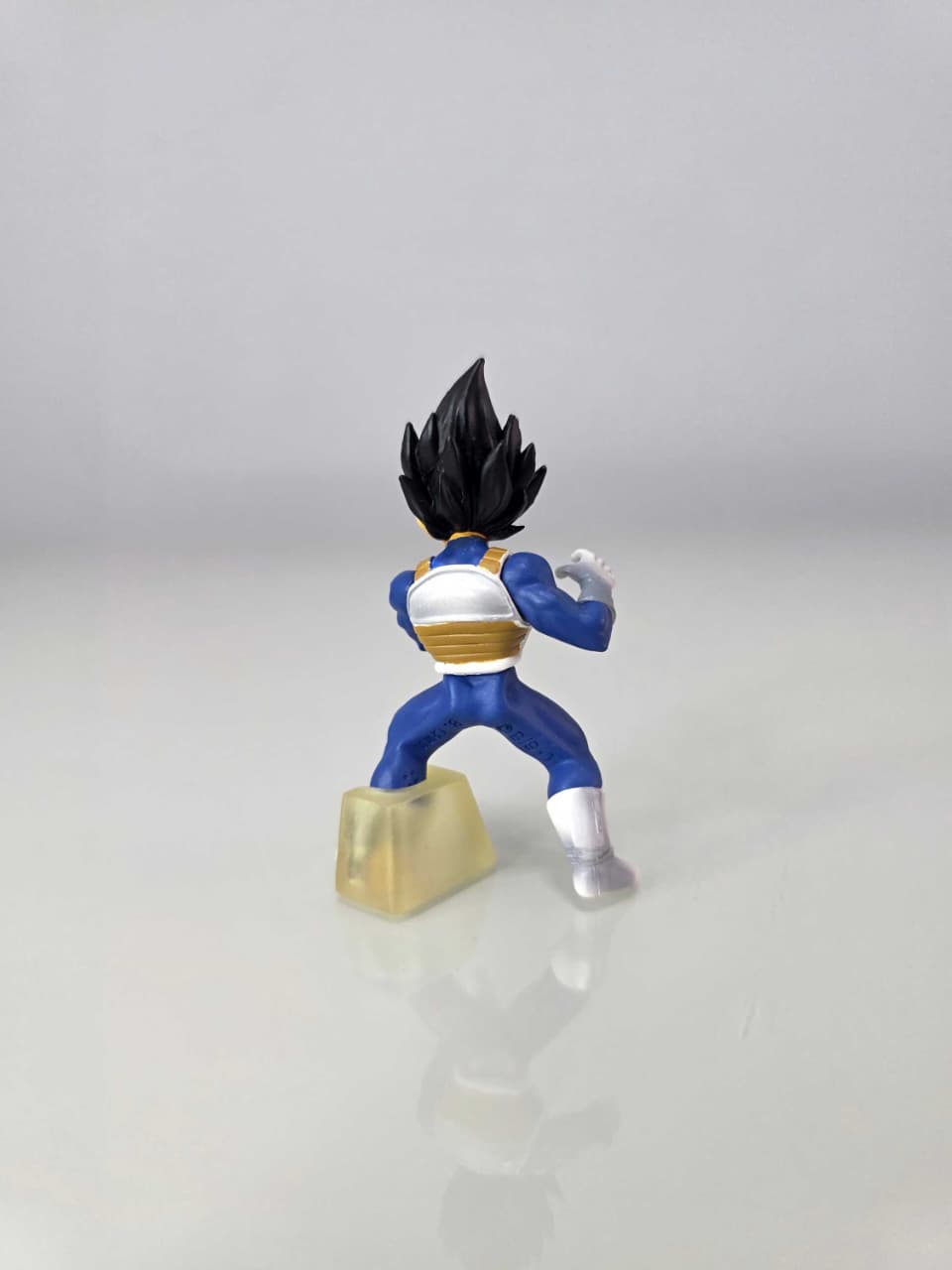 Figura de Vegeta base, en posición de combate con un brazo flexionado. Cabello negro y armadura clásica azul y blanca.