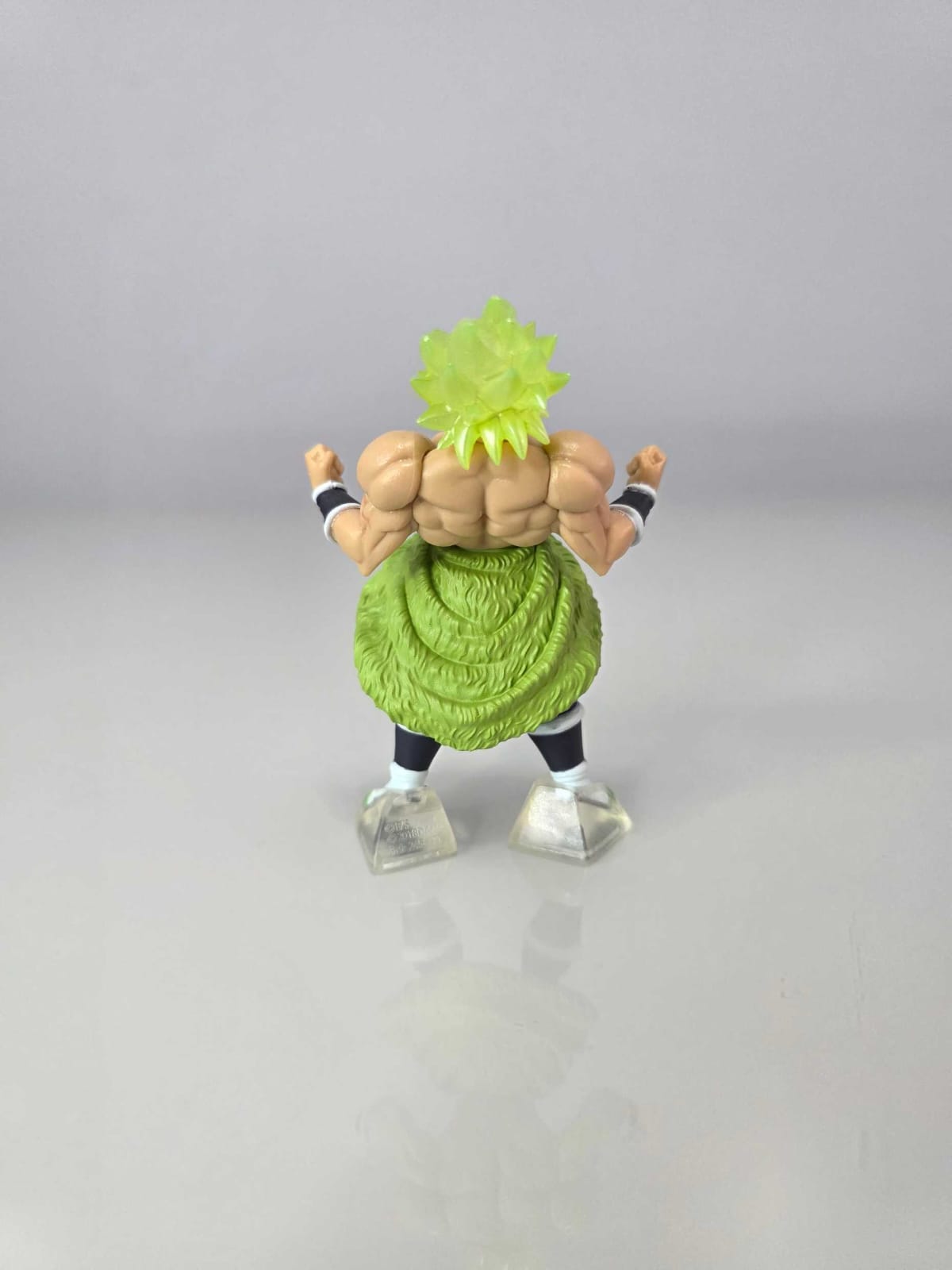 Figura de Broly en su forma Super Saiyan, con cabello verde translúcido y expresión de furia. Pose de grito de poder con ambos puños cerrados, representando su transformación legendaria.