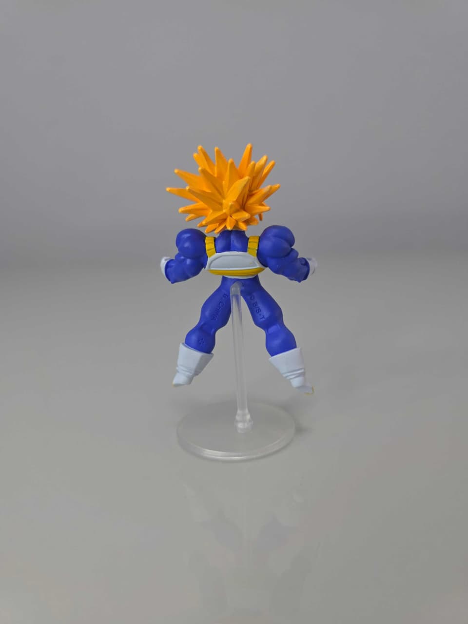 Figura de Trunks del Futuro en Super Saiyan, con cabello dorado erizado y musculatura aumentada. Pose de poder con ambos brazos flexionados, recreando su transformación Ultra SSJ durante el entrenamiento con Vegeta.
