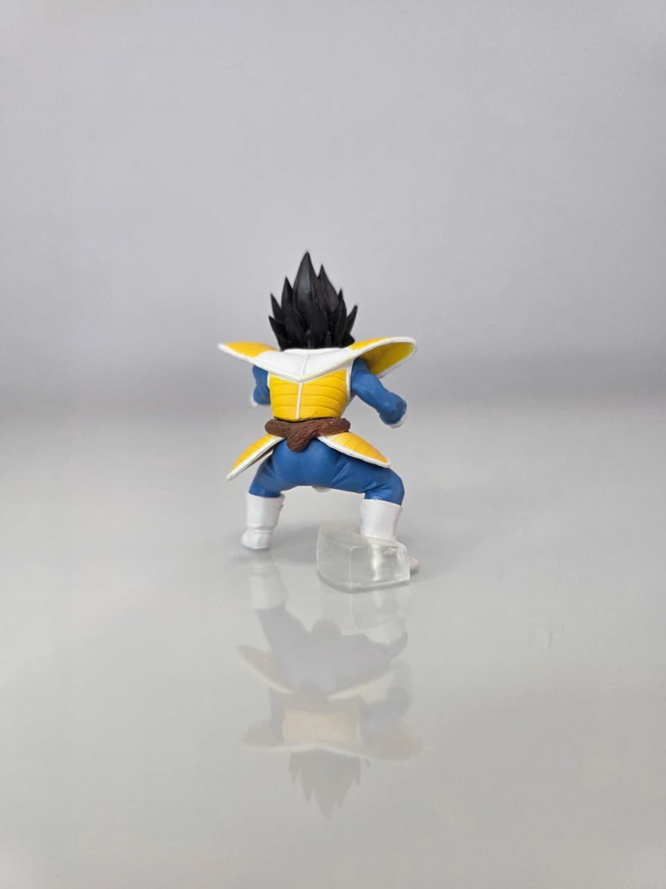 Figura de Vegeta con armadura Saiyajin clásica, durante su llegada a la Tierra. Expresión desafiante y pose de ataque, con el Scouter y hombreras doradas característicos.