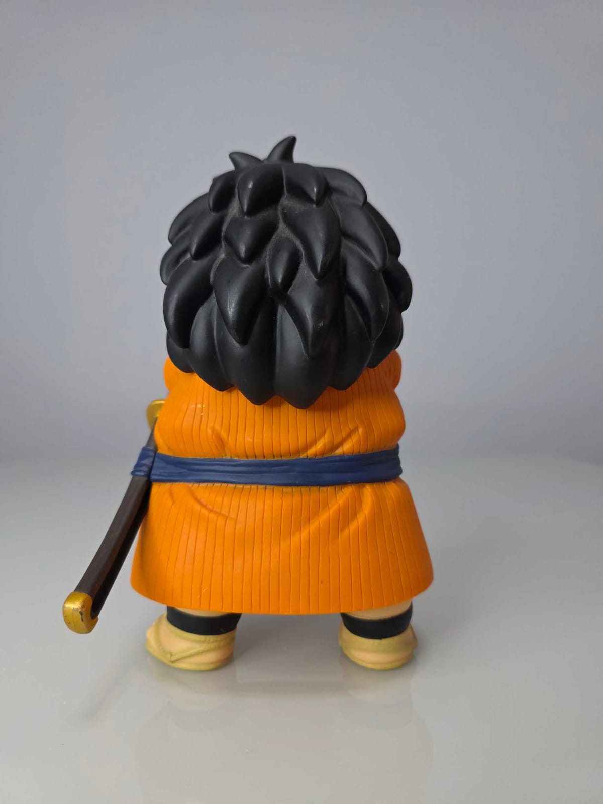 Figura de Yajirobe en su atuendo naranja con espada al cinturón y brazos cruzados. Representa su diseño original del anime con un esculpido redondeado y expresión relajada, típico de la colección sofubi.