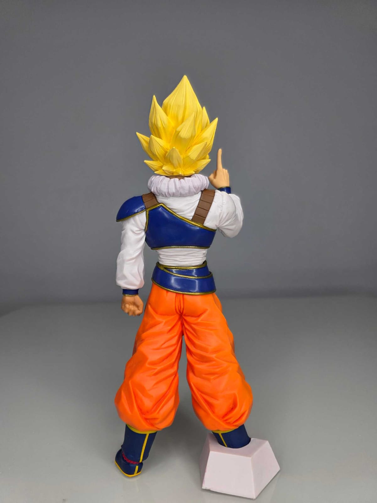 Figura de Goku con el traje de los Yardrat, levantando un dedo en señal de confianza. Representa el momento del encuentro con trunks del futuro.