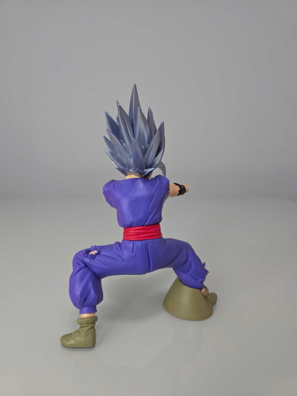 Figura de Gohan en su transformación Bestia, con cabello plateado metálico y postura de ataque. La línea Blood of Saiyans resalta la intensidad del poder Saiyan mediante pintura brillante y esculpido detallado.