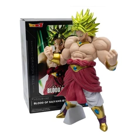 Figura de Broly Super Saiyan legendario en su clásica versión de Dragon Ball Z: El Poder Invencible. Representa al personaje con su característica cabellera verde y pose imponente, parte de la colección Blood of Saiyans, reconocida por su nivel de detalle y dinamismo.