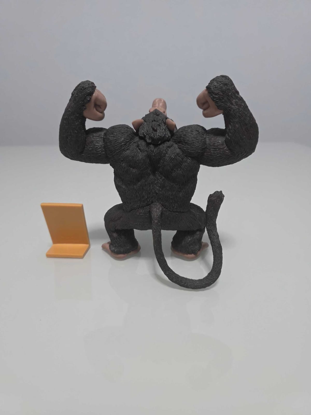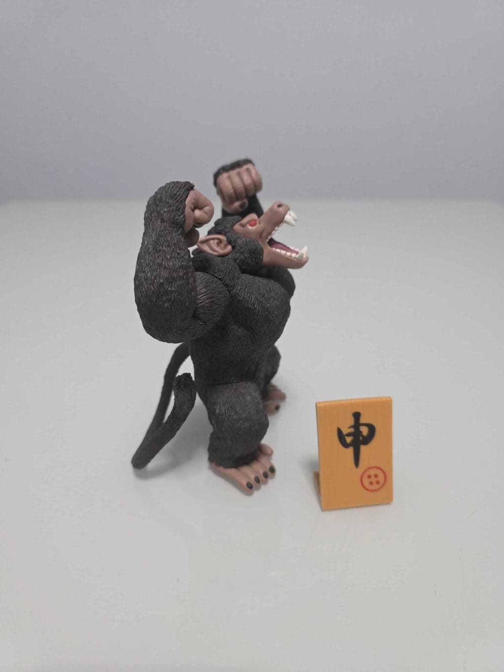 Figura de Ozaru Marrón, la clásica transformación Saiyajin en su versión genérica o sin armadura. Muestra el pelaje marrón oscuro y una postura de rugido con ambos puños levantados. Incluye una losa con símbolo kanji y esfera de cuatro estrellas. Ideal para complementar con los Ozaru Vegeta o Baby Ozaru.