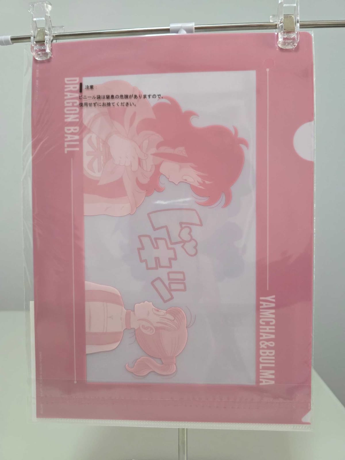 - 1 Clear File A4 con Yamcha y Bulma mirándose, con fondo rosado y estilo romántico.