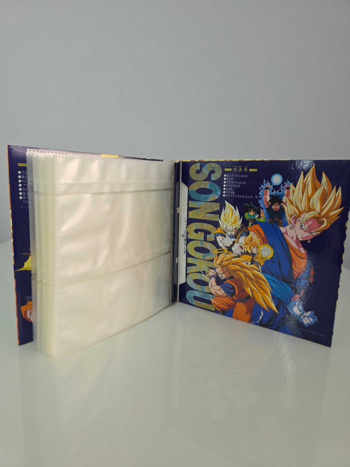 En su interior, el álbum cuenta con separadores ilustrados y hojas plásticas para organizar y proteger tarjetas Carddass, Super Battle, Hero Collection o similares.