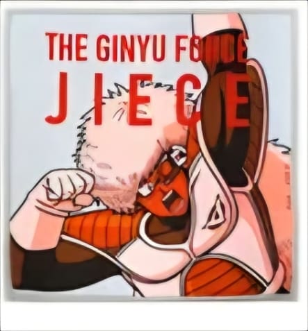 Toalla con Jeice en primer plano, fondo rosado y letras “The Ginyu Force Jiece”.