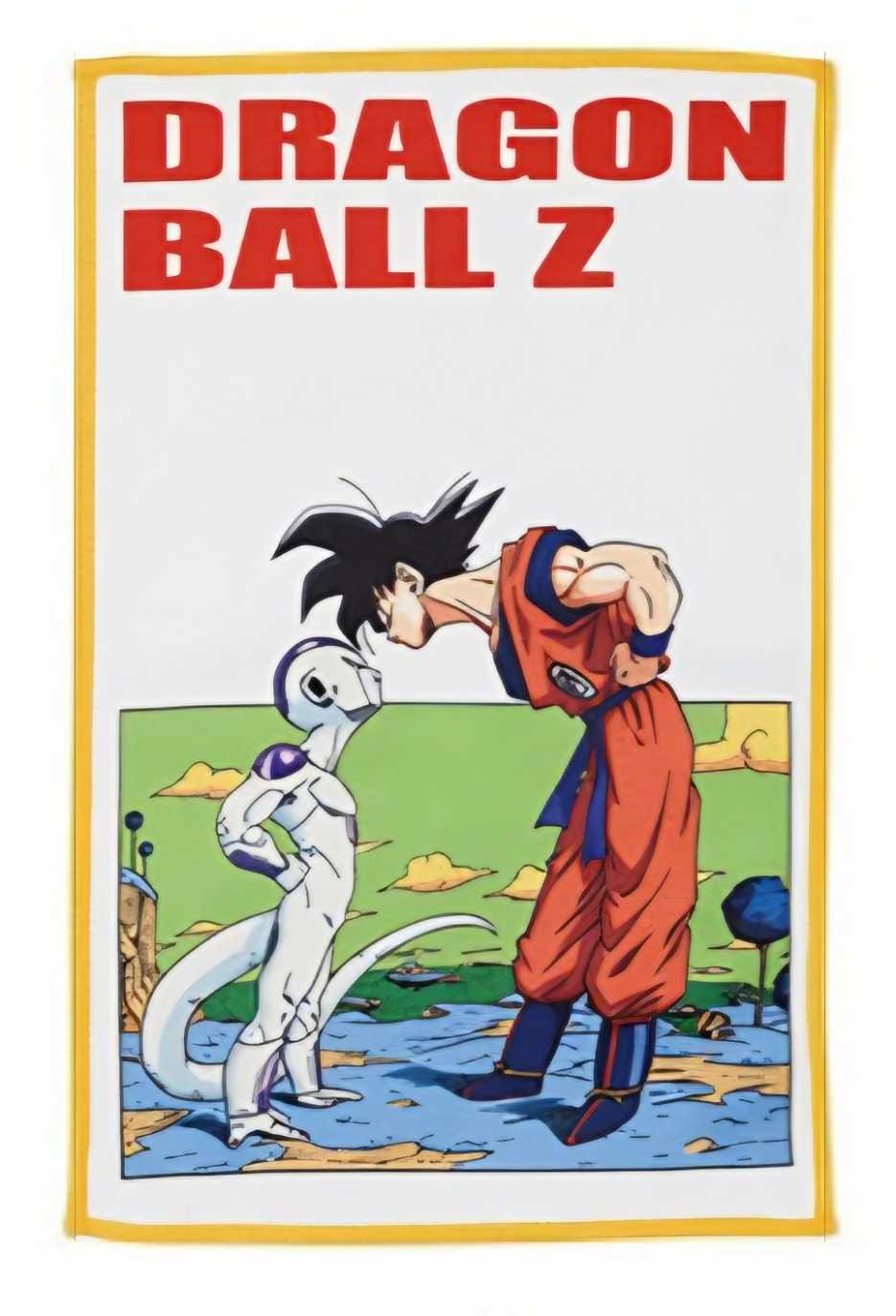 Icónica escena de Goku y Freezer en su primer enfrentamiento, fondo con cielo namekiano.