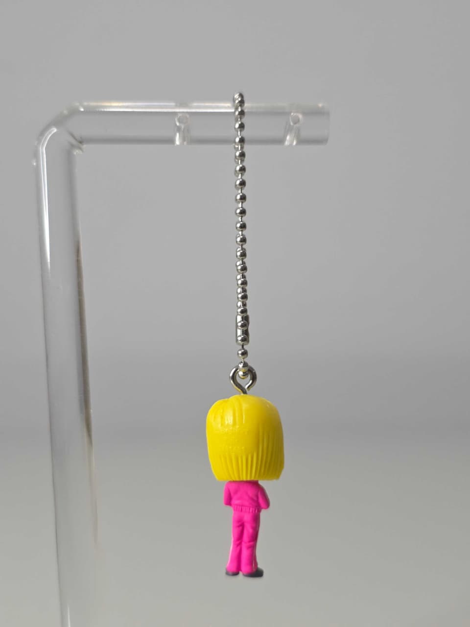 Androide 18 en versión moderna, con chándal rosado y brazos cruzados.