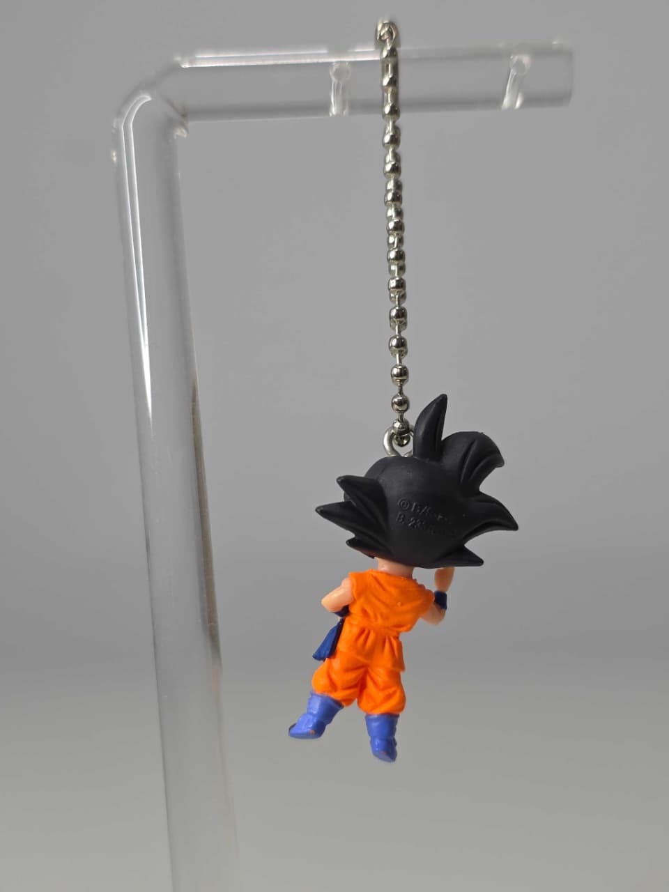 Gokú con gi naranja, cabello negro y expresión alegre.