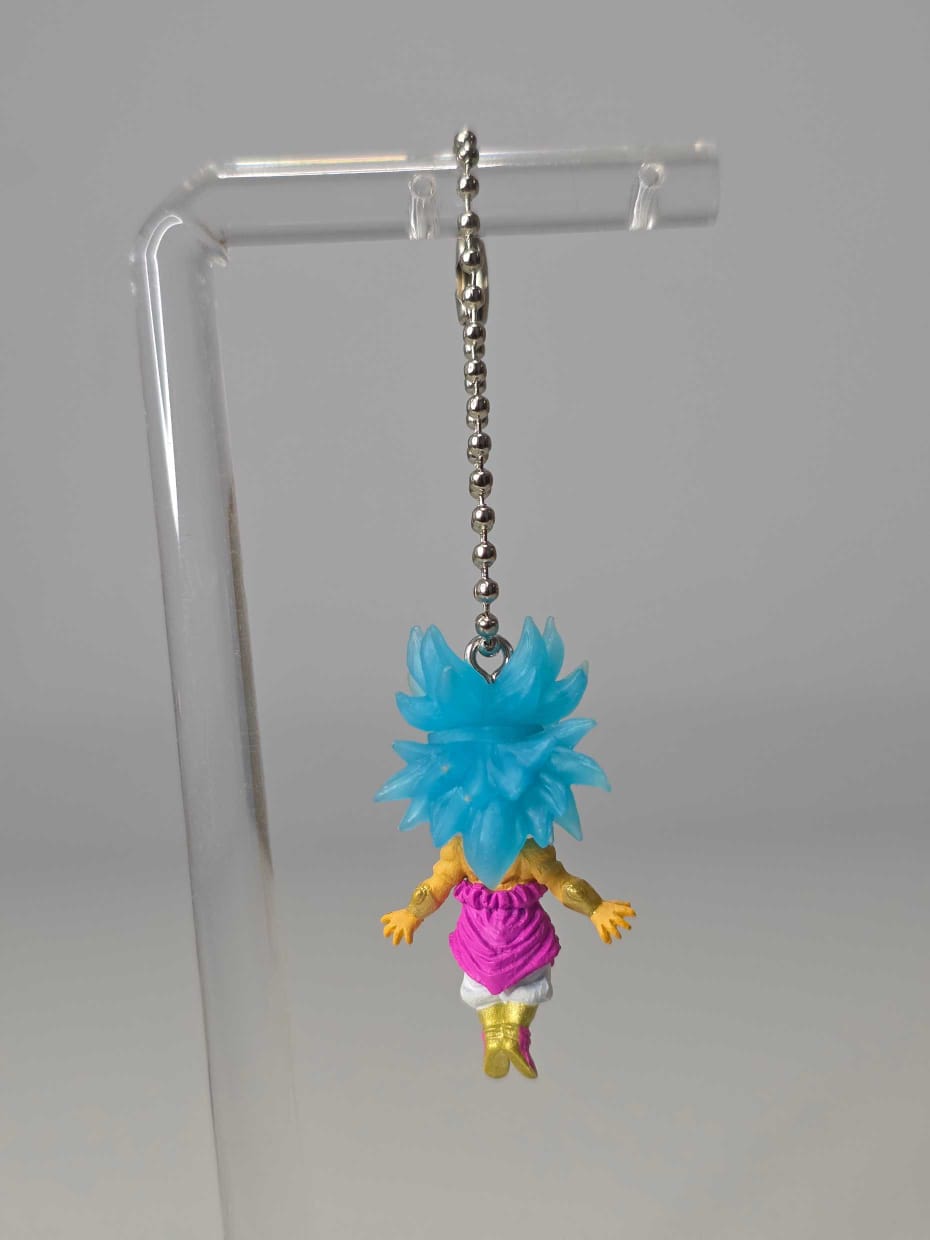 Versión alternativa de Broly con cabello azul, energía intensa y falda rosada.