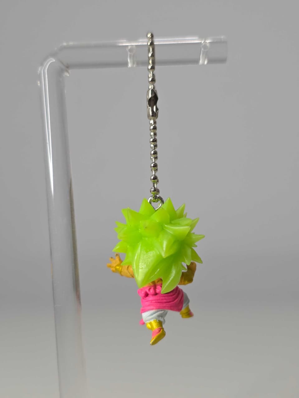 Broly en su forma legendaria SSJ3 con cabello verde claro y taparrabos rosado.