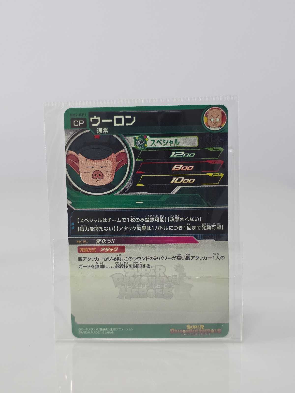 Carta con arte colorido que muestra a Goku niño sosteniendo un paraguas con las Esferas del Dragón, junto a Oolong.