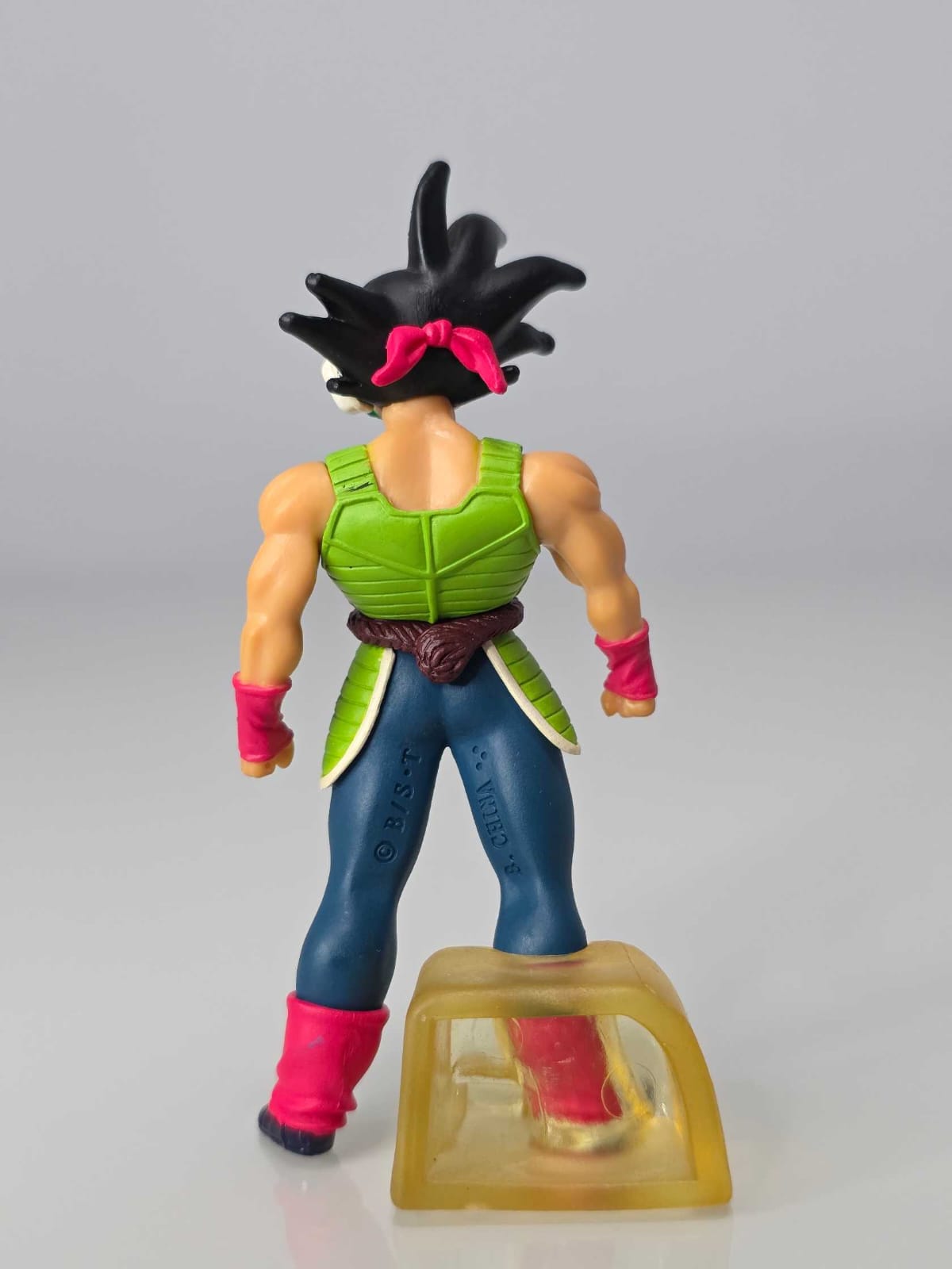 Figura de Bardock, padre de Gokú, con su armadura Saiyajin y el característico visor verde.