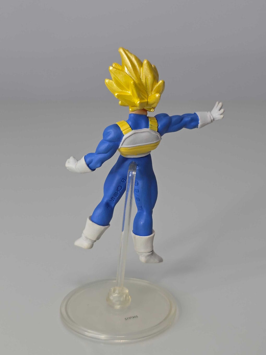 Figura de Vegeta Super Saiyajin en pose de ataque con el brazo extendido, listo para lanzar su técnica final.