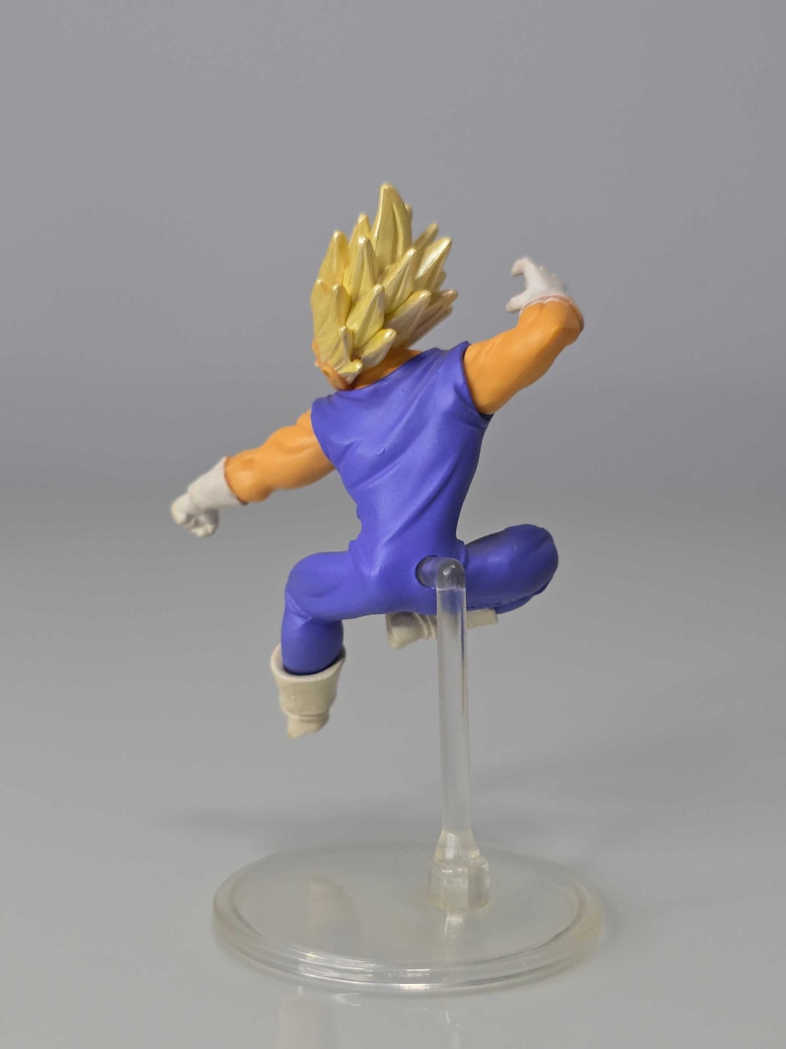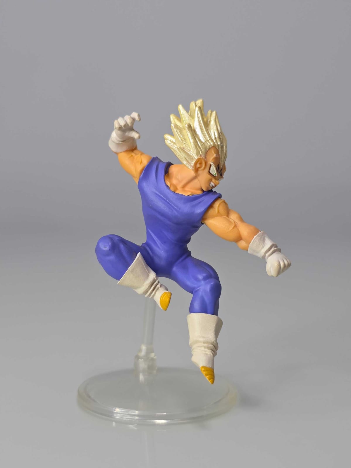 Figura de Majin Vegeta con el símbolo “M” en la frente y gesto de furia característico.