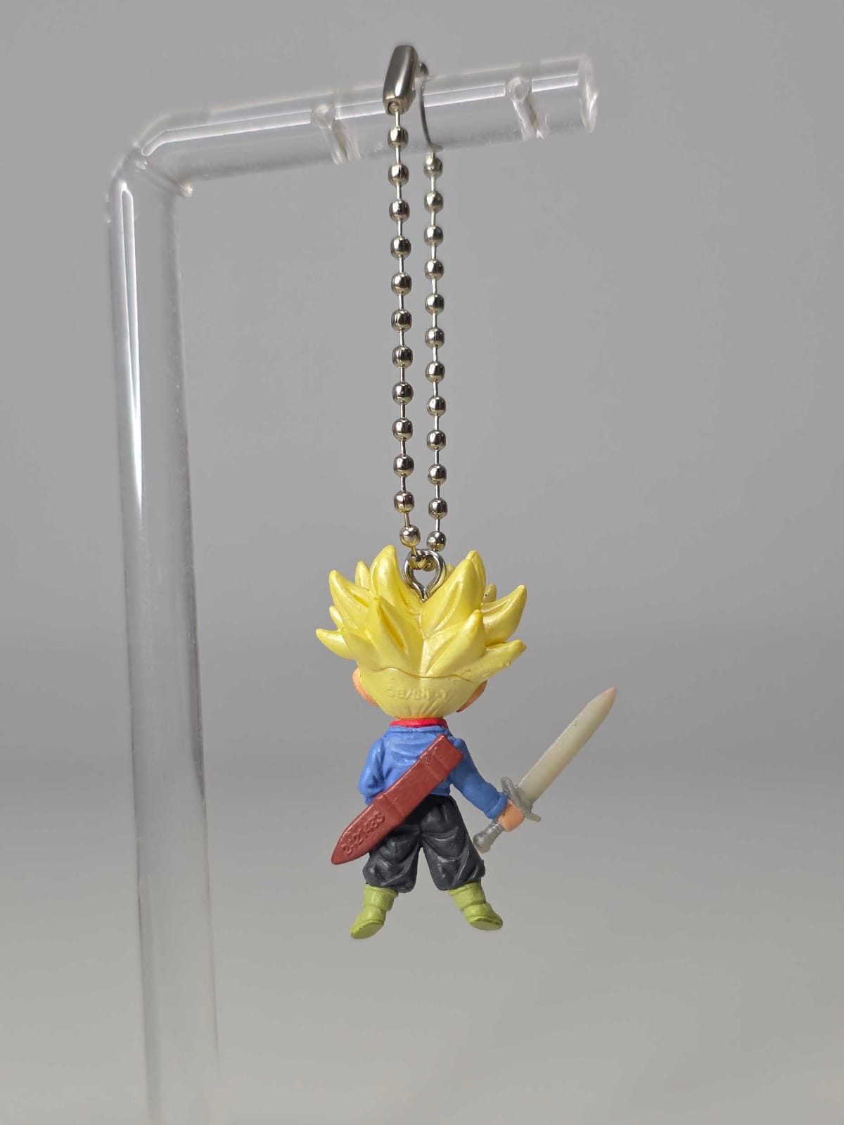 Trunks del futuro Super Saiyajin con espada, pañuelo rojo y chaqueta azul, expresión decidida.