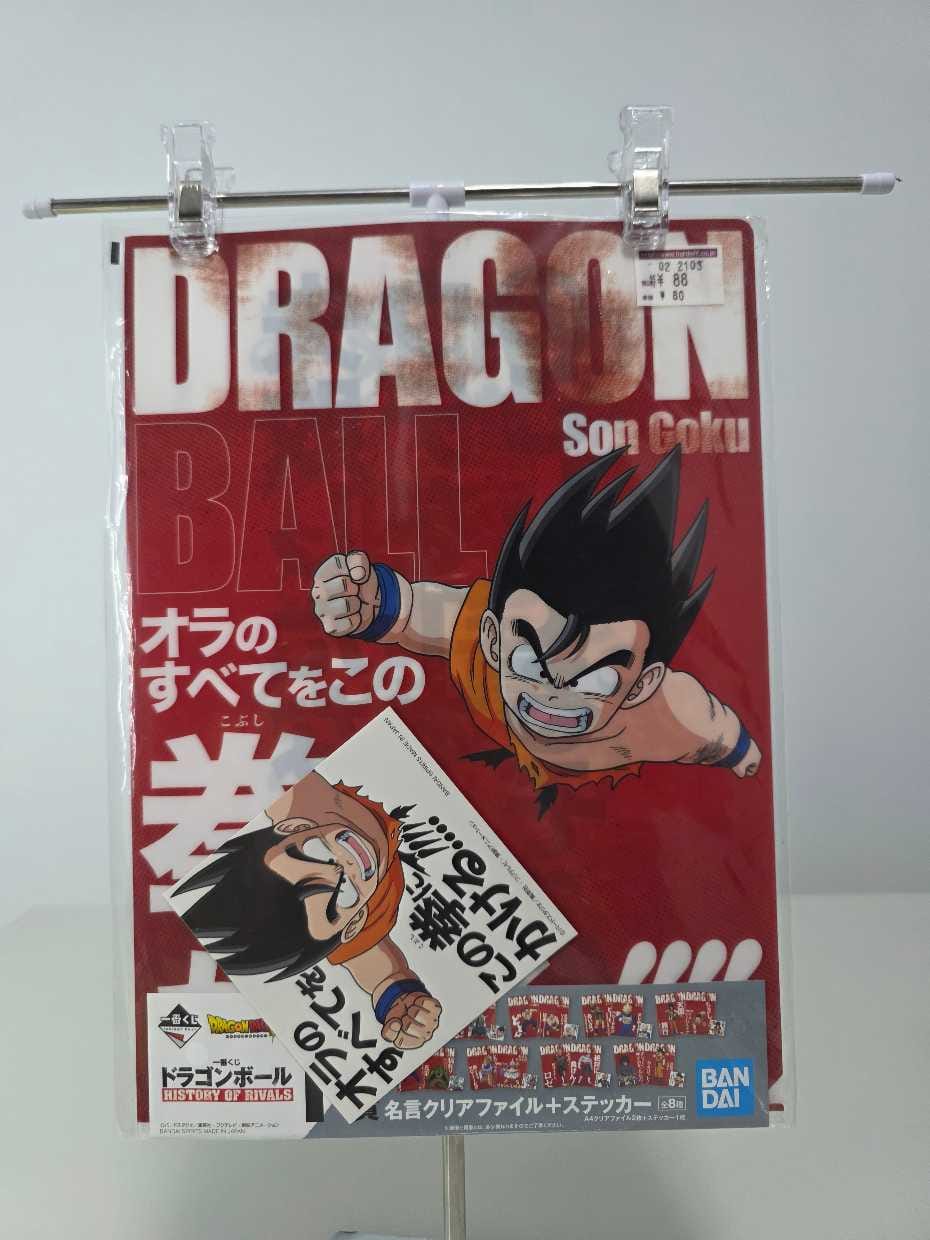 Set de clear files perteneciente a la colección Ichiban Kuji Dragon Ball – History of Rivals, lanzada por Bandai Spirits. Cada diseño representa la rivalidad legendaria entre Goku y Piccolo Daimaoh, con acabado brillante y tipografía de estilo retro.