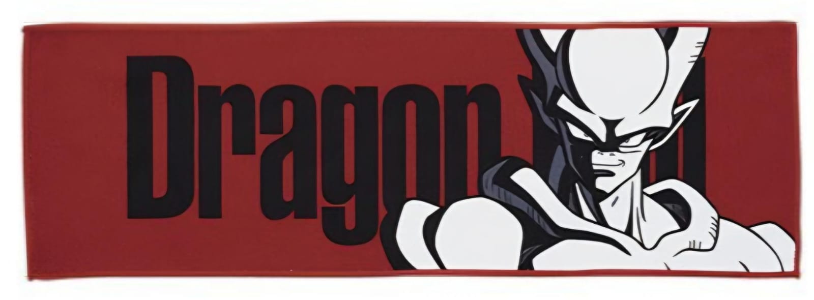 Janemba en fondo rojo con el texto “Dragon Ball” en negro. Inspirado en la película Dragon Ball Z: ¡El renacer de la fusión! con Goku y Vegeta.
