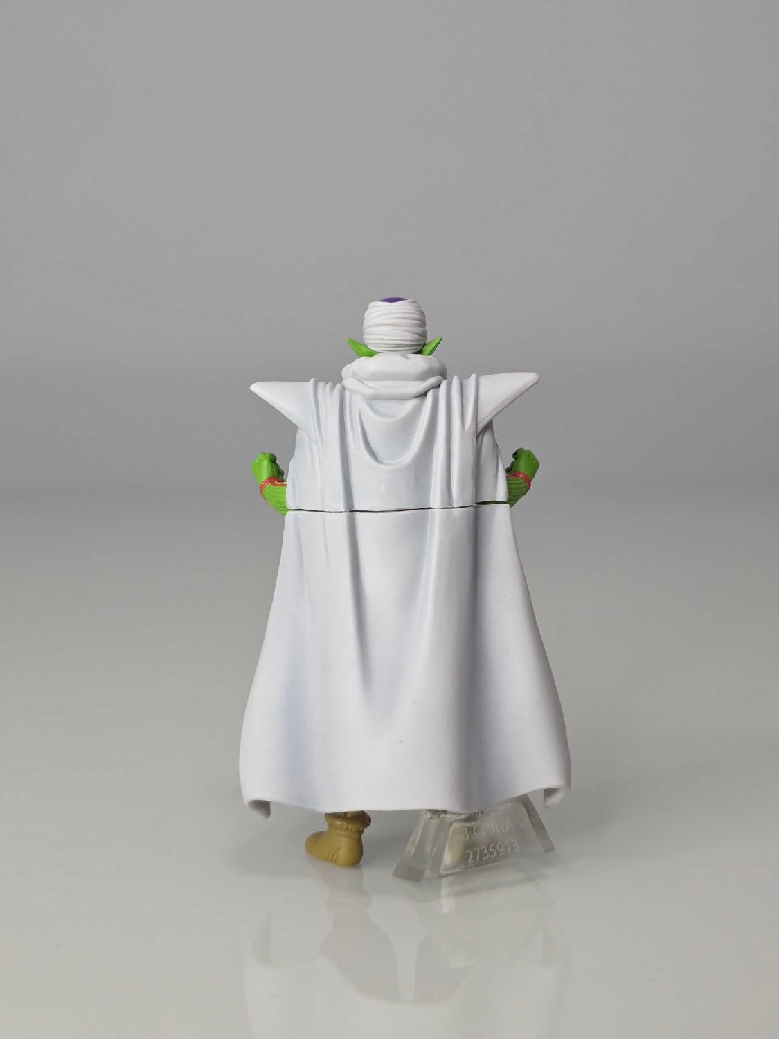 Figura gashapon de Piccolo (versión Daima), con capa blanca, pantalón púrpura y gesto serio de concentración.