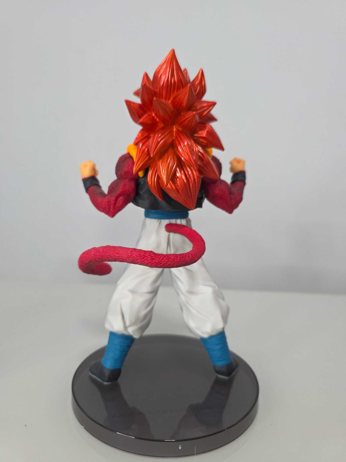 Figura de Gogeta SSJ4 con pose imponente y expresión agresiva propia de la línea Blood of Saiyans. Excelente sombreado en el pelaje, cuerpo y cabello rojo brillante.