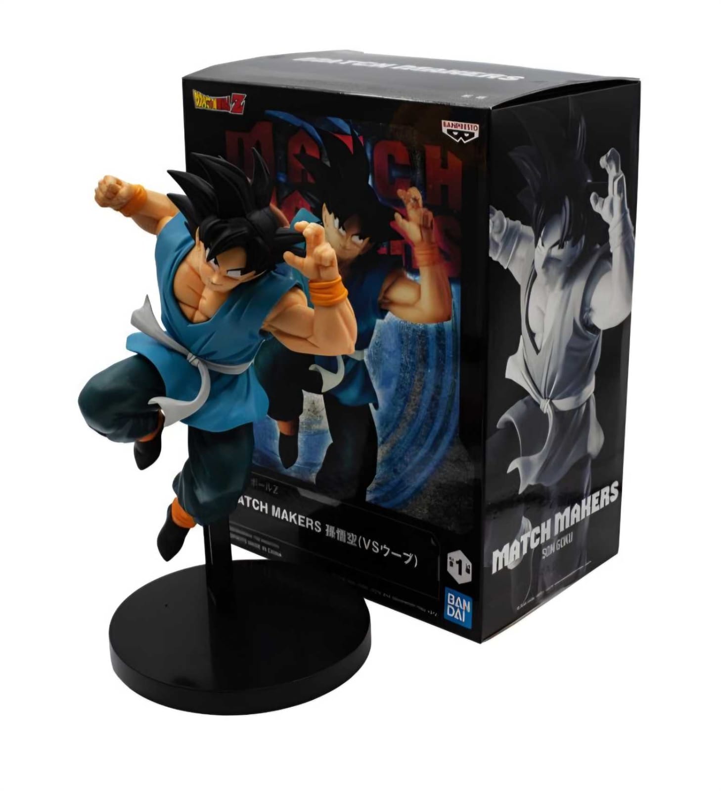 Figura de Gokú adulto versión GT en pose de combate lista para enfrentar a Uub. Parte de la serie Match Makers, con diseño compacto pero detallado.