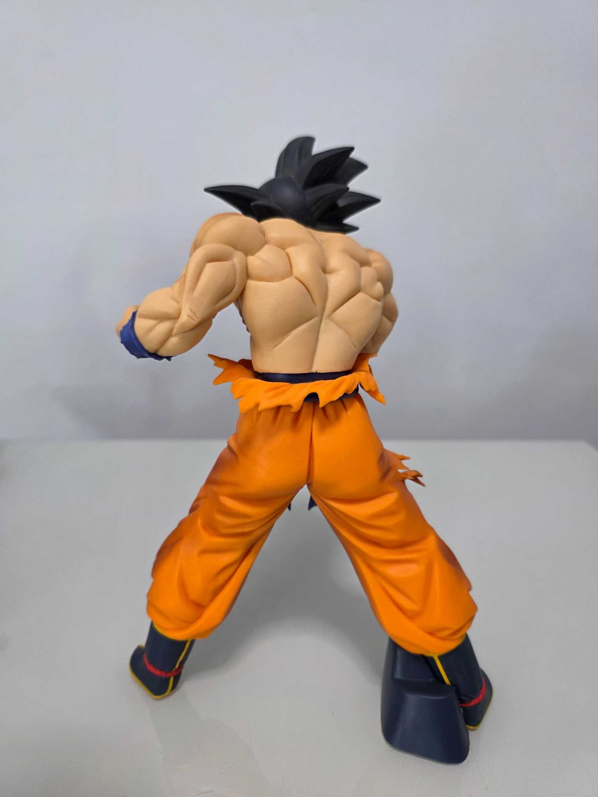 Figura de Gokú en pose de poder, con esculpido musculoso y un sombreado muy marcado propio de la línea Maximatic. Una de las figuras más grandes y robustas de su categoría.