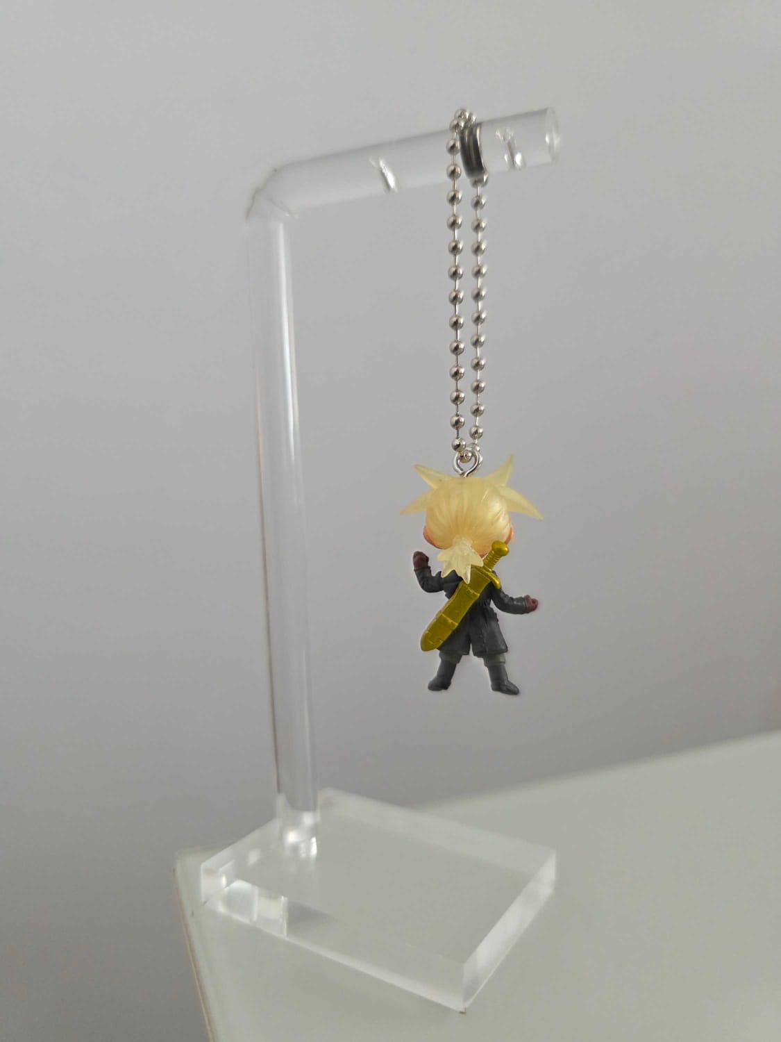 Llavero de Trunks del futuro en fase saiyayin, con traje negro.