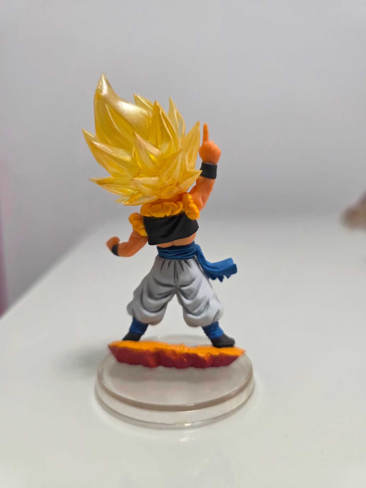 Figura de Gogeta Super Saiyajin de la línea Dragon Ball UG, representado con un dedo apuntando hacia arriba en gesto desafiante.