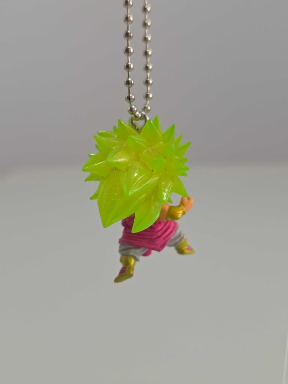 Llavero de Broly Super Saiyajin 3 con cabello verde, representado con postura agresiva y gran presencia.