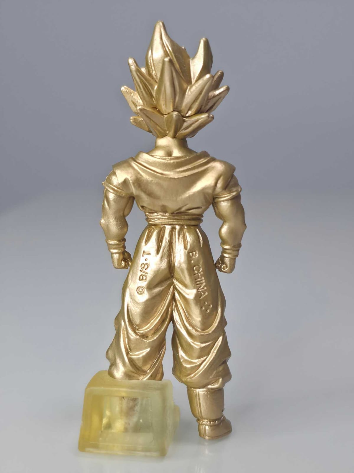 Figura gashapon HG de Goku Super Saiyajin Guerrero Z en color oro, con acabado metálico brillante.