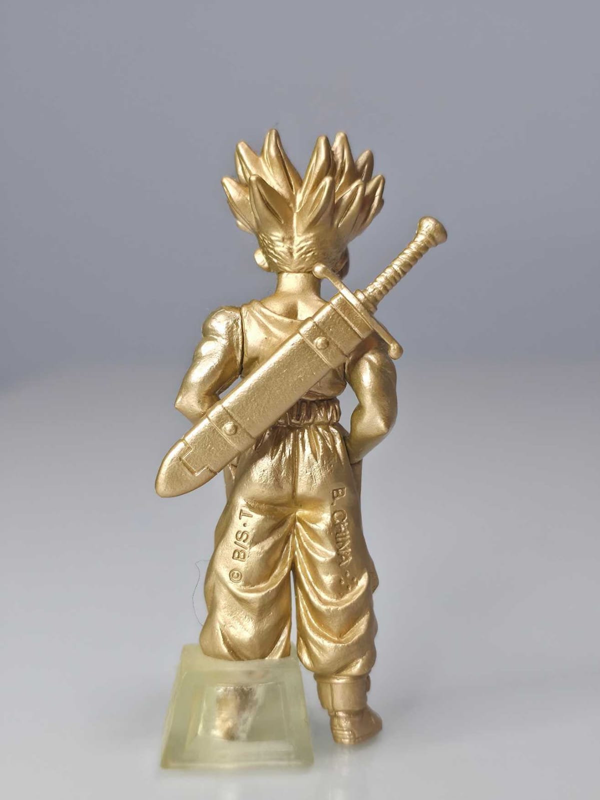 Figura gashapon HG de Trunks Super Saiyajin Guerrero Z en color oro, con acabado monocromático metálico.