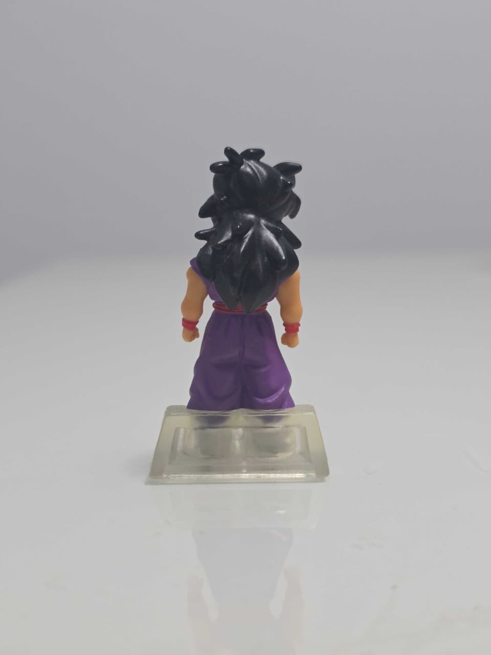 Figura gashapon de Gohan niño con traje morado de los Guerreros Z, representado en postura de combate.