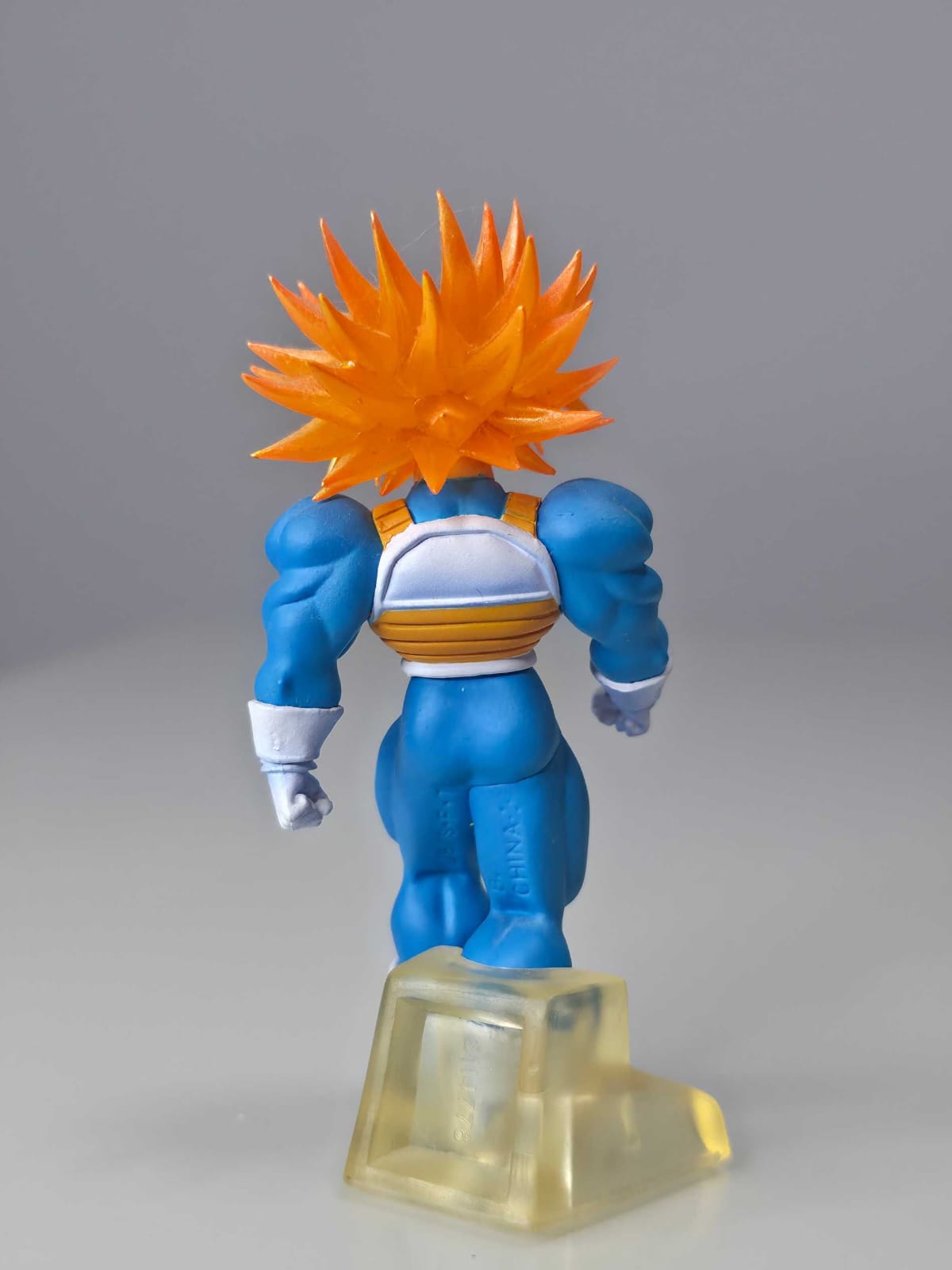 Figura gashapon DG de Super Trunks (forma musculosa), representado en pose de avance con expresión decidida.